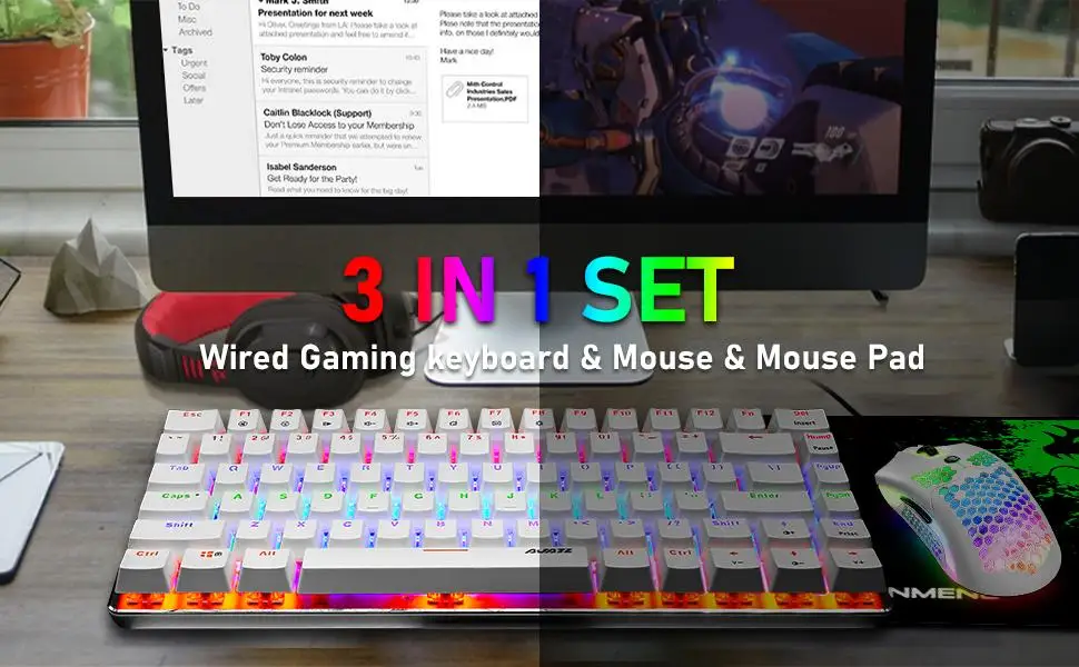 Gaming Keyboard Mouse Pad Backlit Combo Set