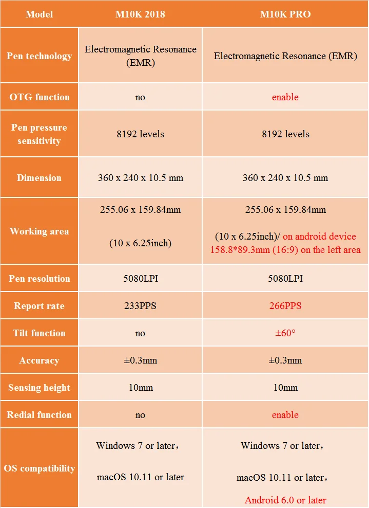 Comparison between M10K 2018 and M10K PRO