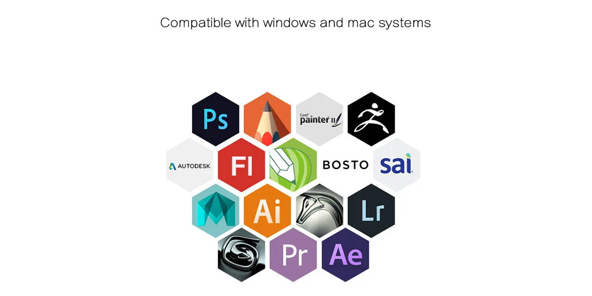 Works with Windows 7 or later and macOS 10.12 or later. PD1161 supports many popular creative apps like Photoshop, SAI, Krita, Medibang, Blender, and more. It also fits online learning and remote workflows with apps like OneNote, Microsoft Whiteboard, and Zoom. Not compatible with iOS or Android phones.