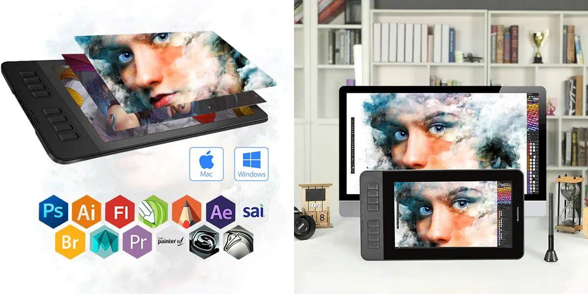 Works with most creative software, including Adobe Photoshop, Illustrator, Clip Studio, Lightroom, Sketchbook Pro, Manga Studio, CorelPainter, FireAlpaca, OpenCanvas, Paint Tool SAI2, Krita, and more.