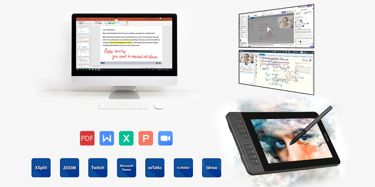 Besides drawing, you can sign and annotate directly on PDF, Word, Excel, and PowerPoint files. You can also illustrate ideas during web conferencing or distance education (including Zoom), helping streamline workflows and improve efficiency.