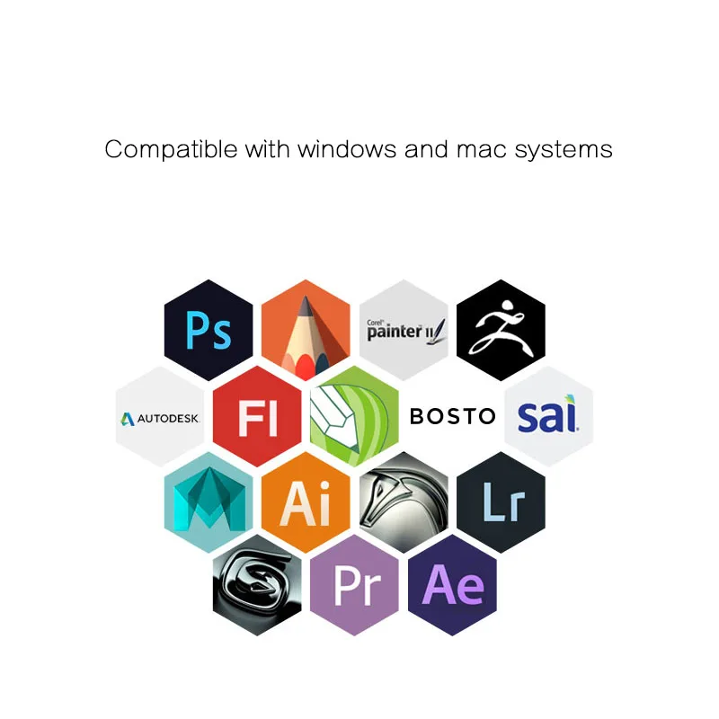 Works with most creative software, including Adobe Photoshop, Illustrator, Clip Studio, Lightroom, Sketchbook Pro, Manga Studio, CorelPainter, FireAlpaca, OpenCanvas, Paint Tool SAI2, Krita, and more.