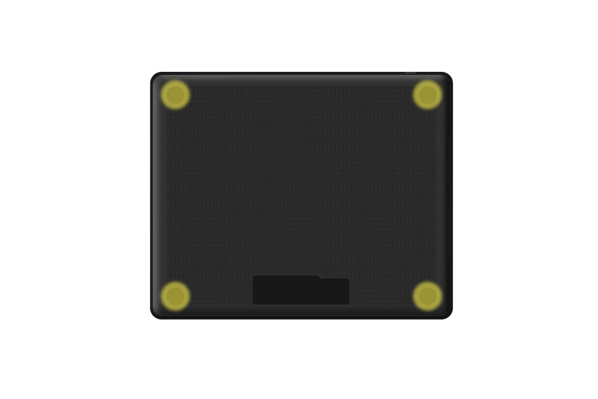 4 anti-slip rubber pads help keep the tablet stable. A Micro USB port supports connection to a desktop or PC. The 4 express keys are placed at the top of the board, so you do not need to rotate the tablet 180 degrees to use left-hand mode.