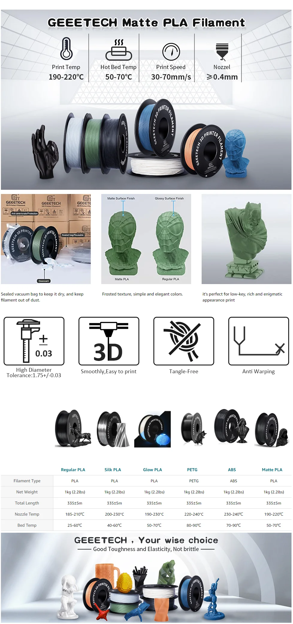 GEEETECH 3D Matte PLA Filament 1.75mm