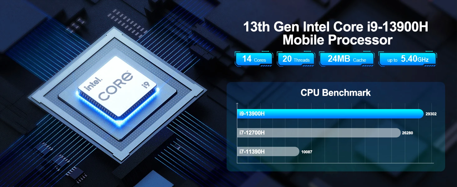 - 13th Gen Intel Core i9-13900H Processor – Delivers high-speed performance with 14 cores and 20 threads.
