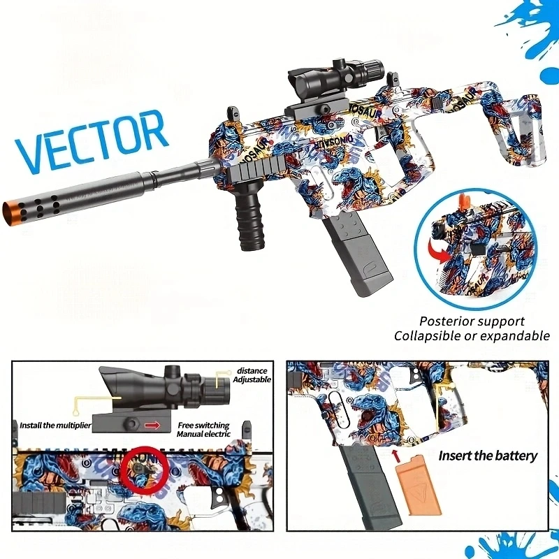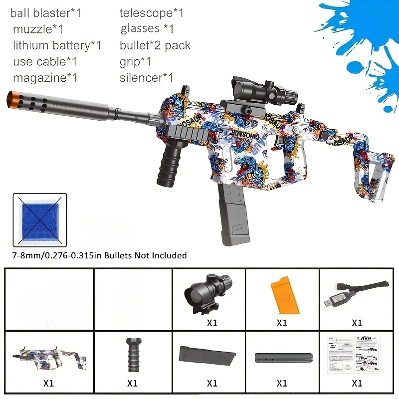 Electric Gel Ball Blaster: The high-speed automatic splatter ball blaster, with its exquisite exterior paint, is designed for shooting and is full of fighting spirit! It is made of high-quality, durable ABS synthetic design and a nylon composite body, able to sustain intense battles and meet your entertainment needs for hours.