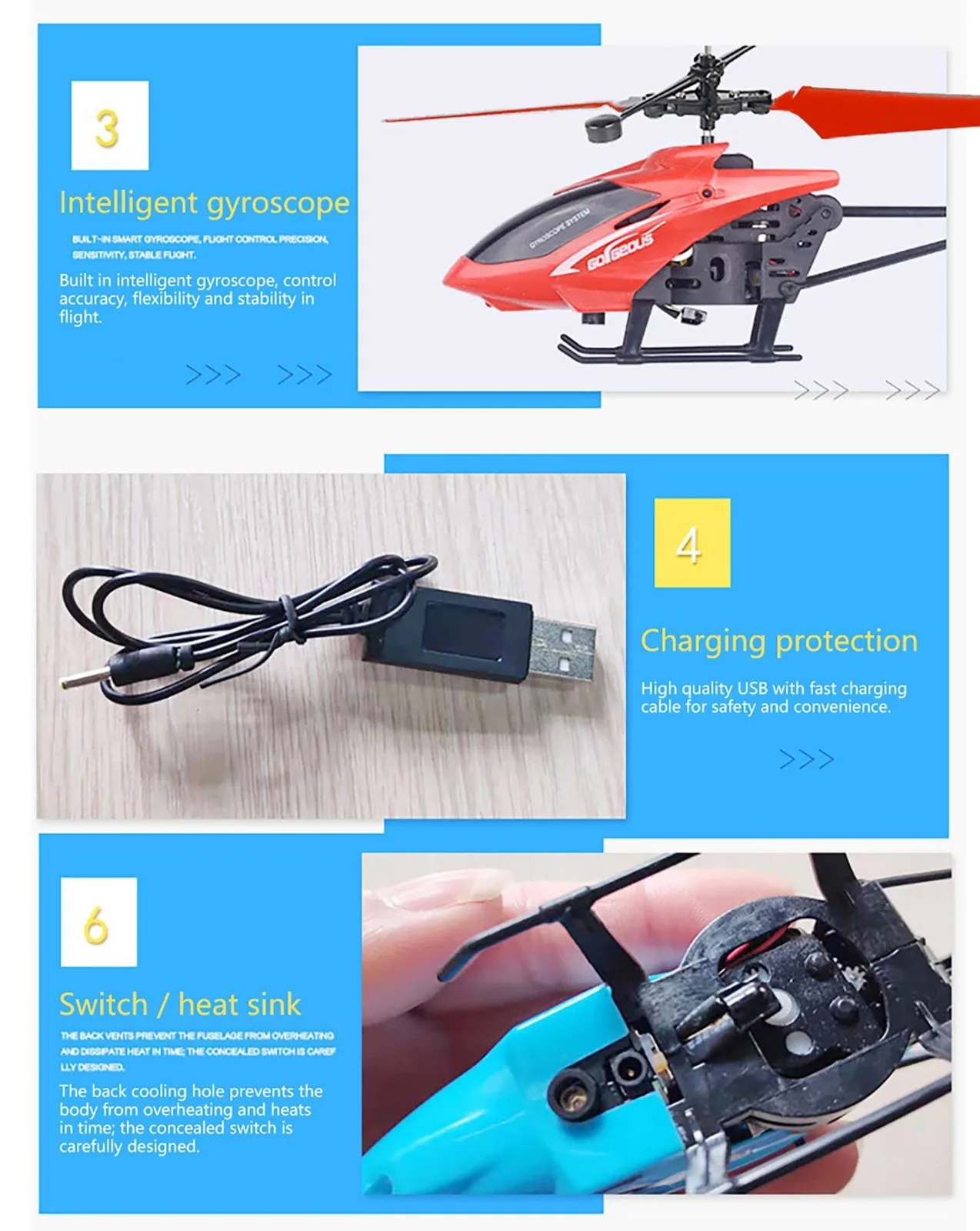 - Automatic startup: activates within 3 seconds upon opening the switch and holding the side of the aircraft