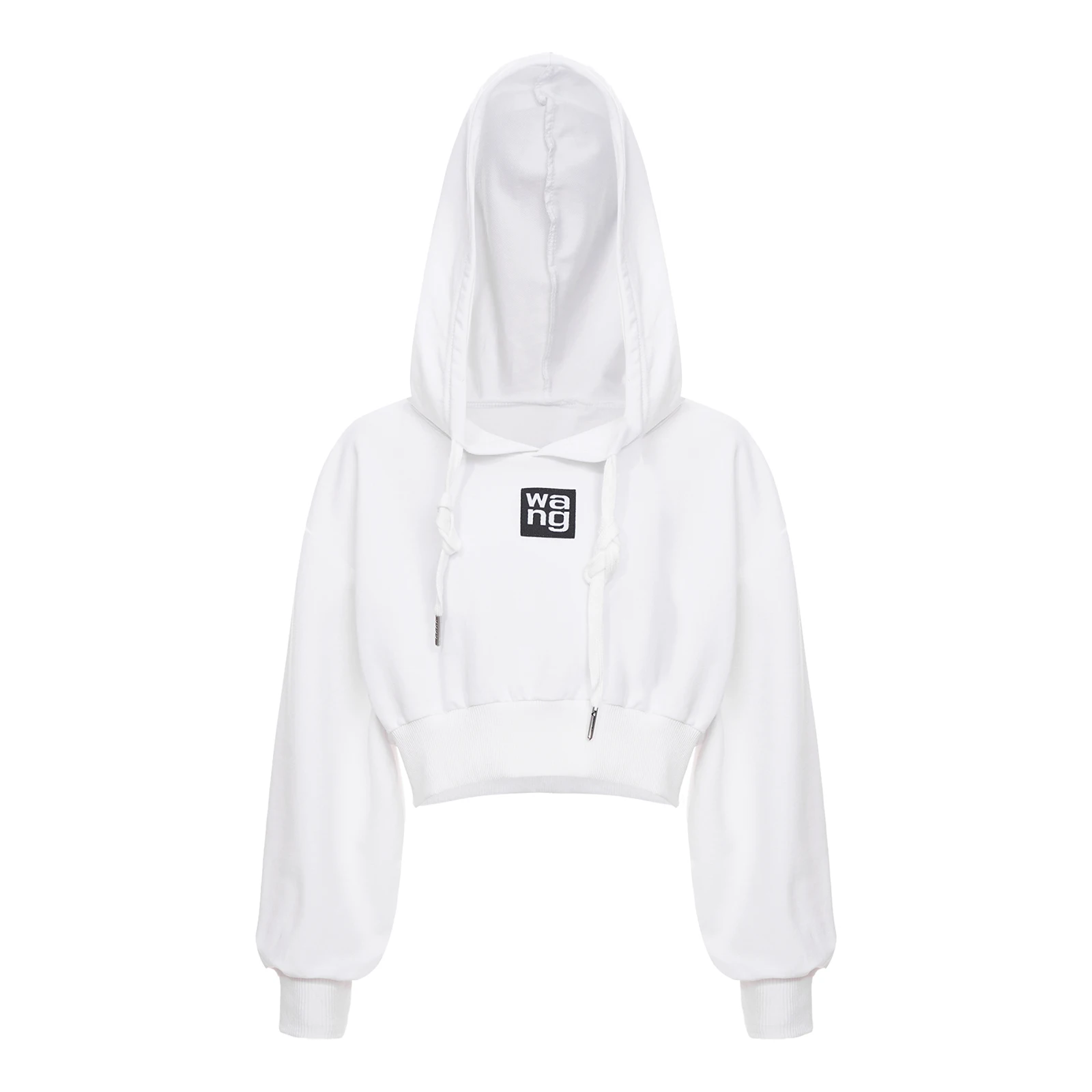 - This solid color cropped hooded sweatshirt pairs perfectly with a skirt, sweatpants, or cargo pants.