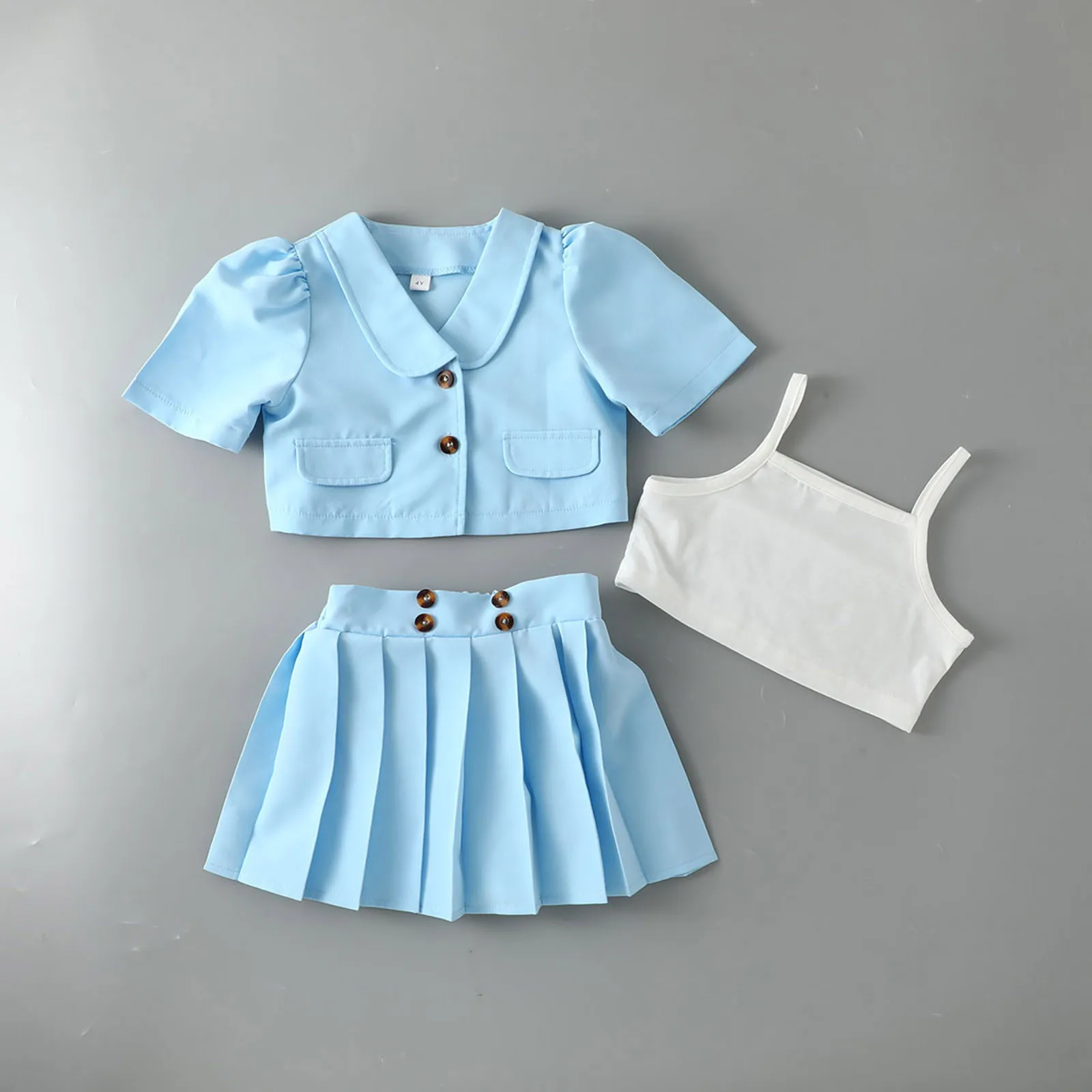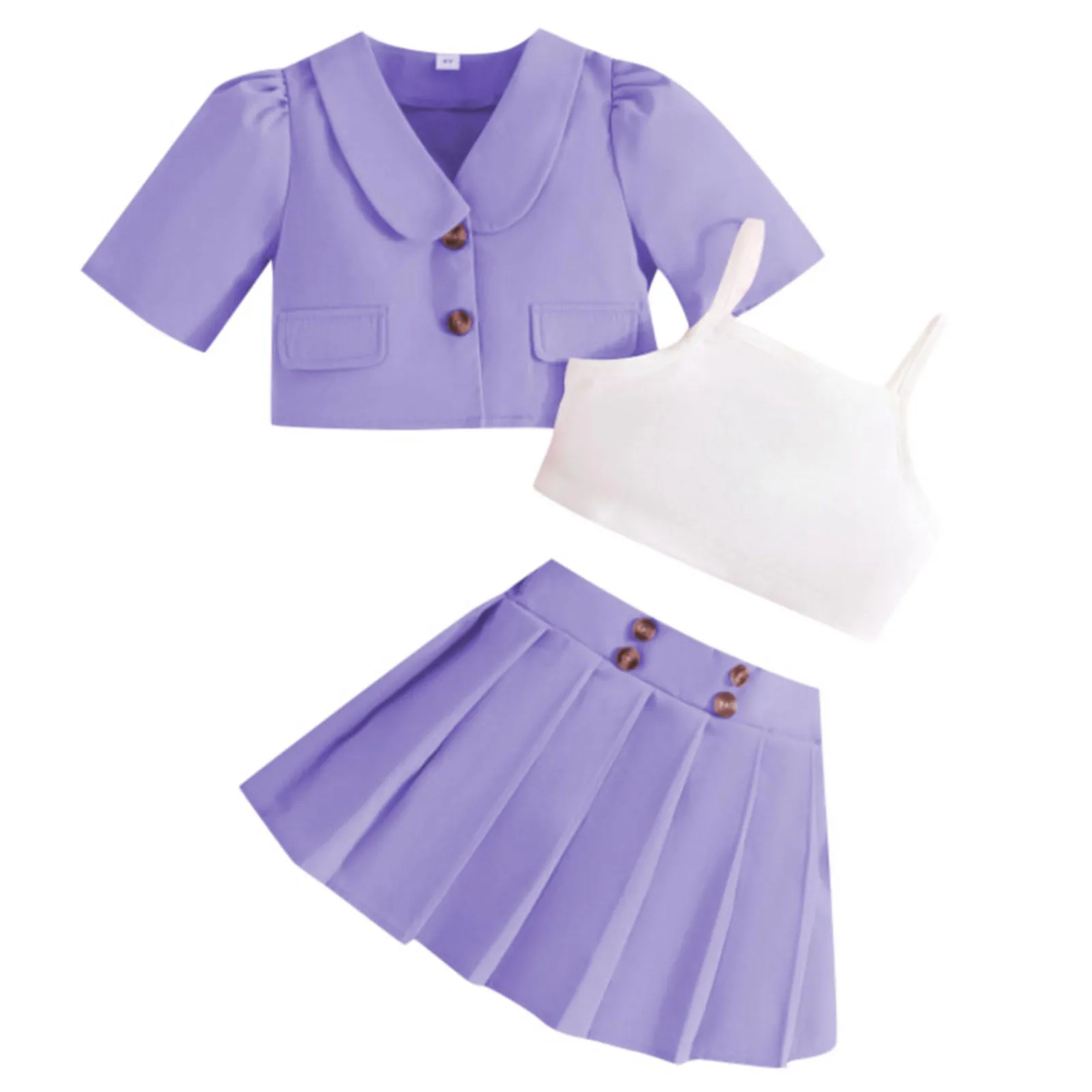 Toddler Kids Girls Summer Clothes Solid Short Sleeve Coat Suit Camisole Crop Tops Skirt Outfits 3Pcs Set