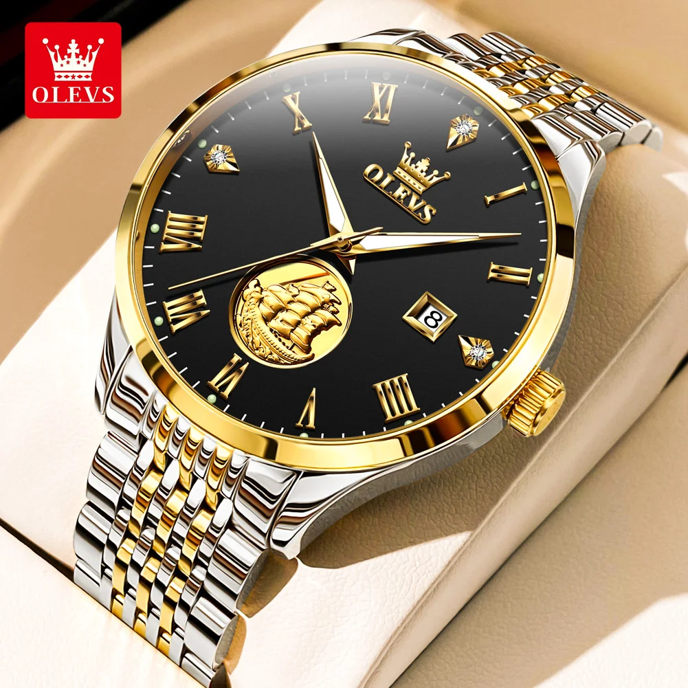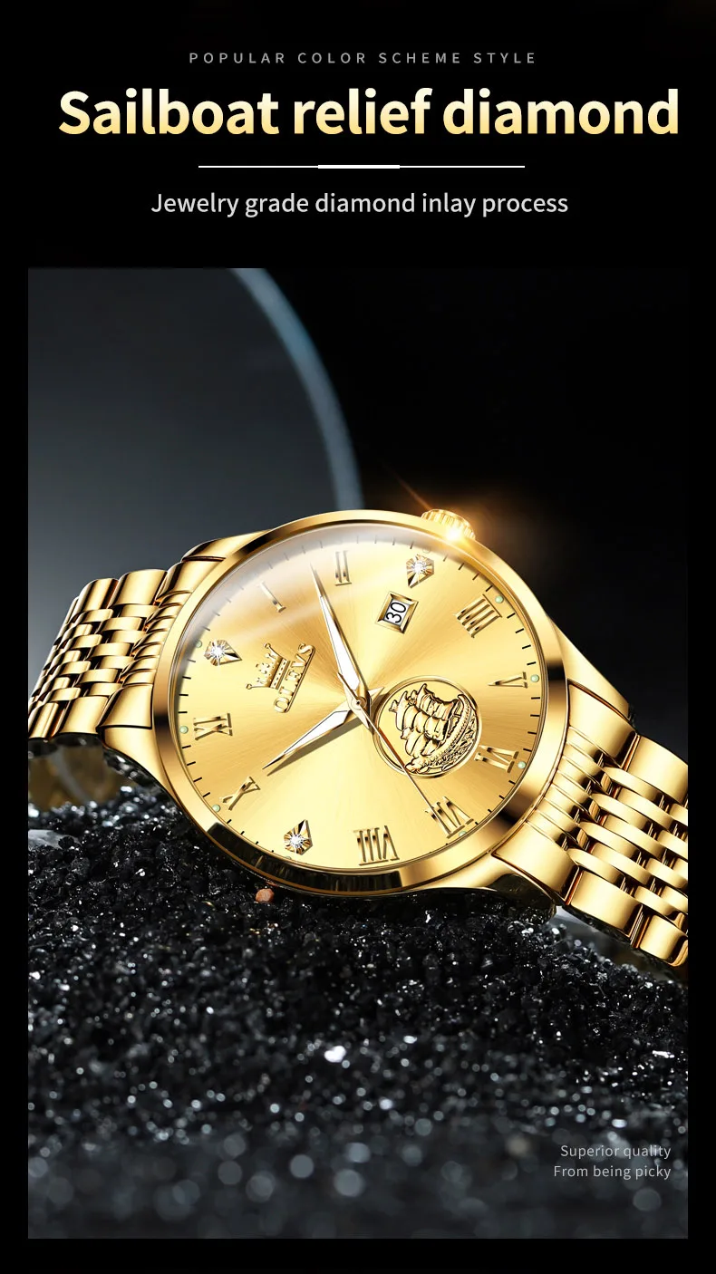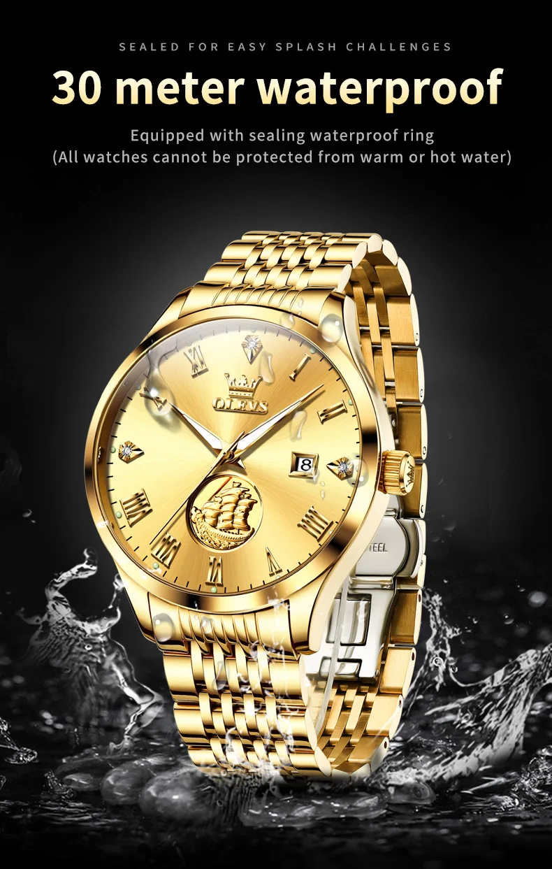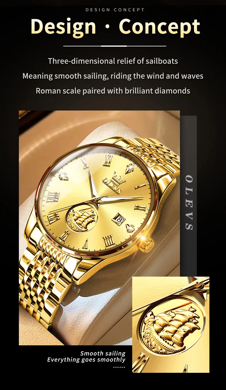 Gold Sailboat OLEVS Luxury Watch – Waterproof & Automatic