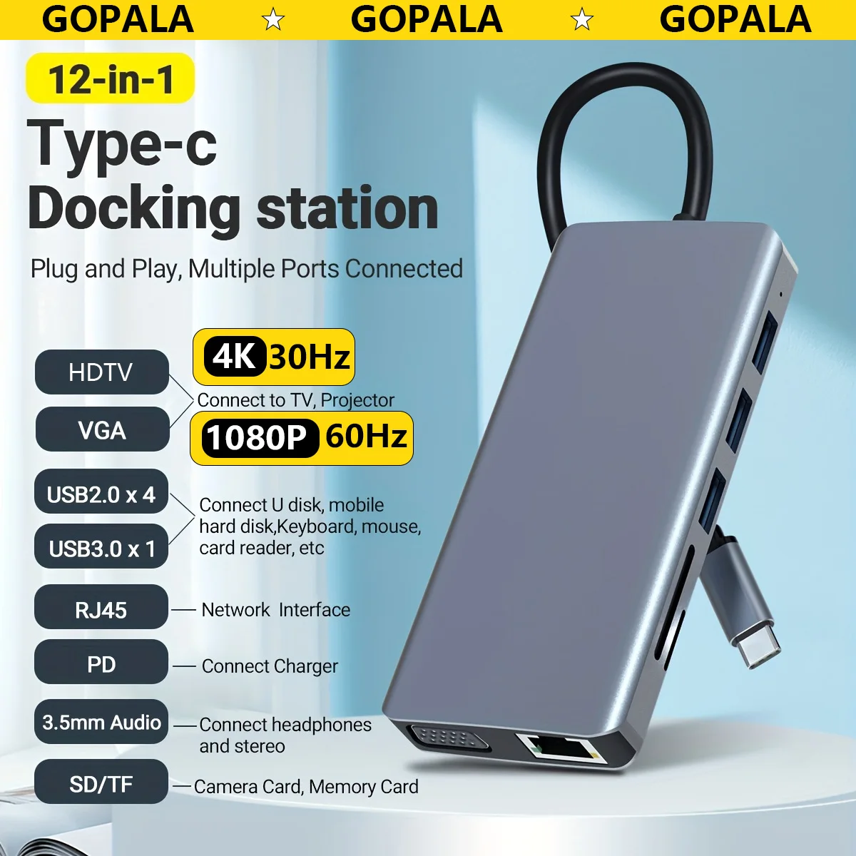 Gopala 12-in-1 USB-C Docking Station Dual Monitor
