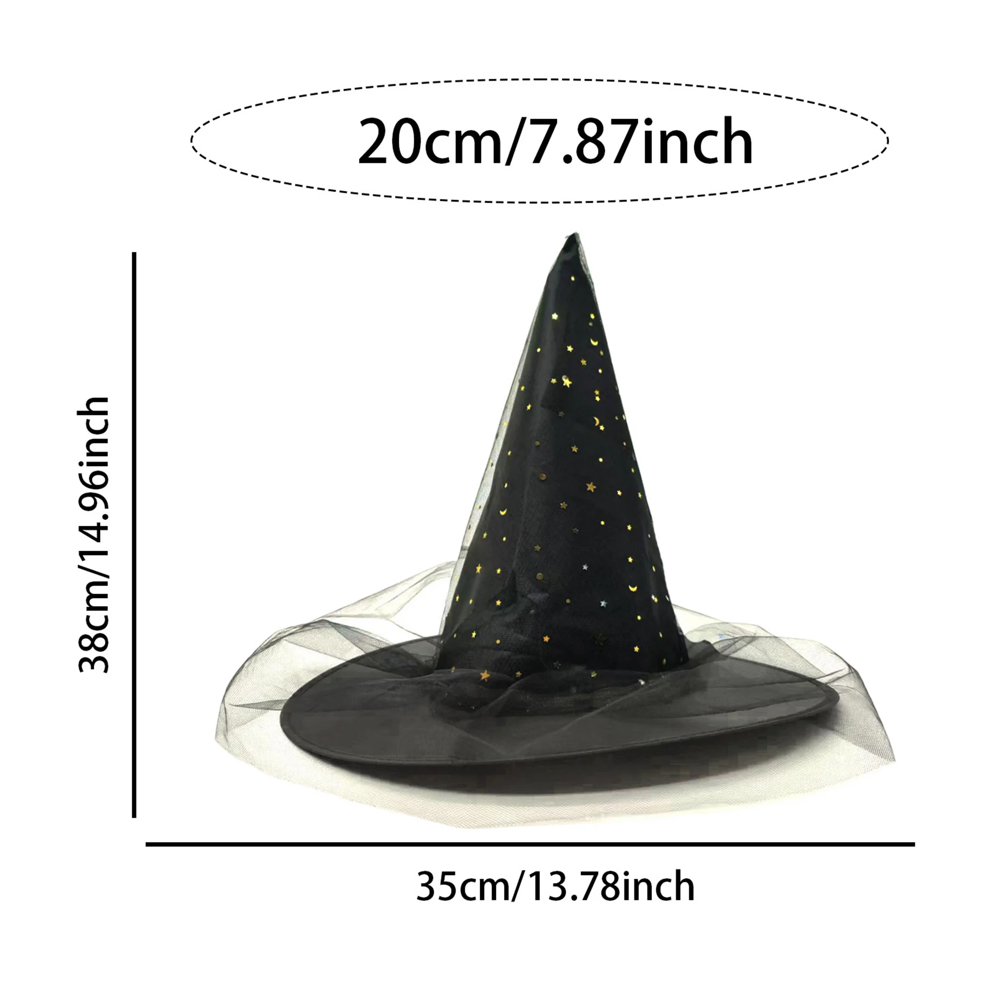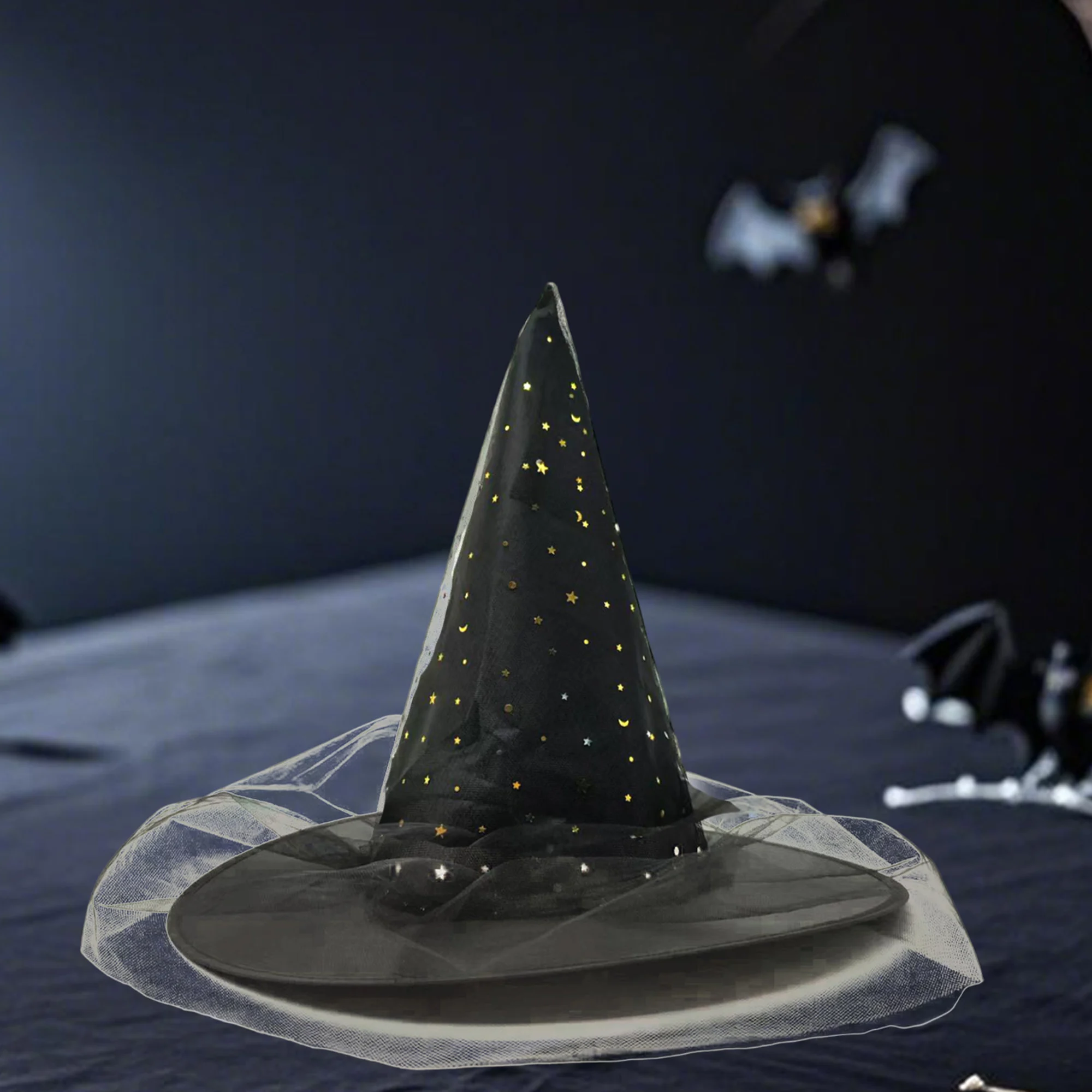 Gothic Black Witch Hat with Mesh and Sequins