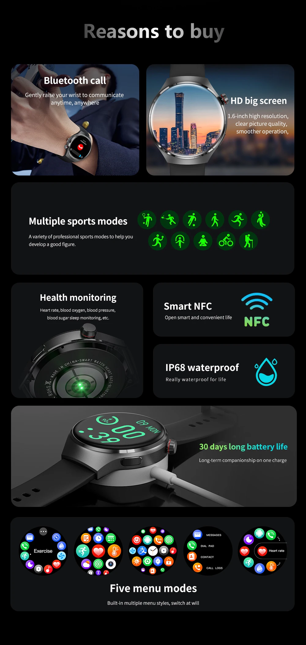 GPS Sports Smartwatch NFC Waterproof HD Touch Screen