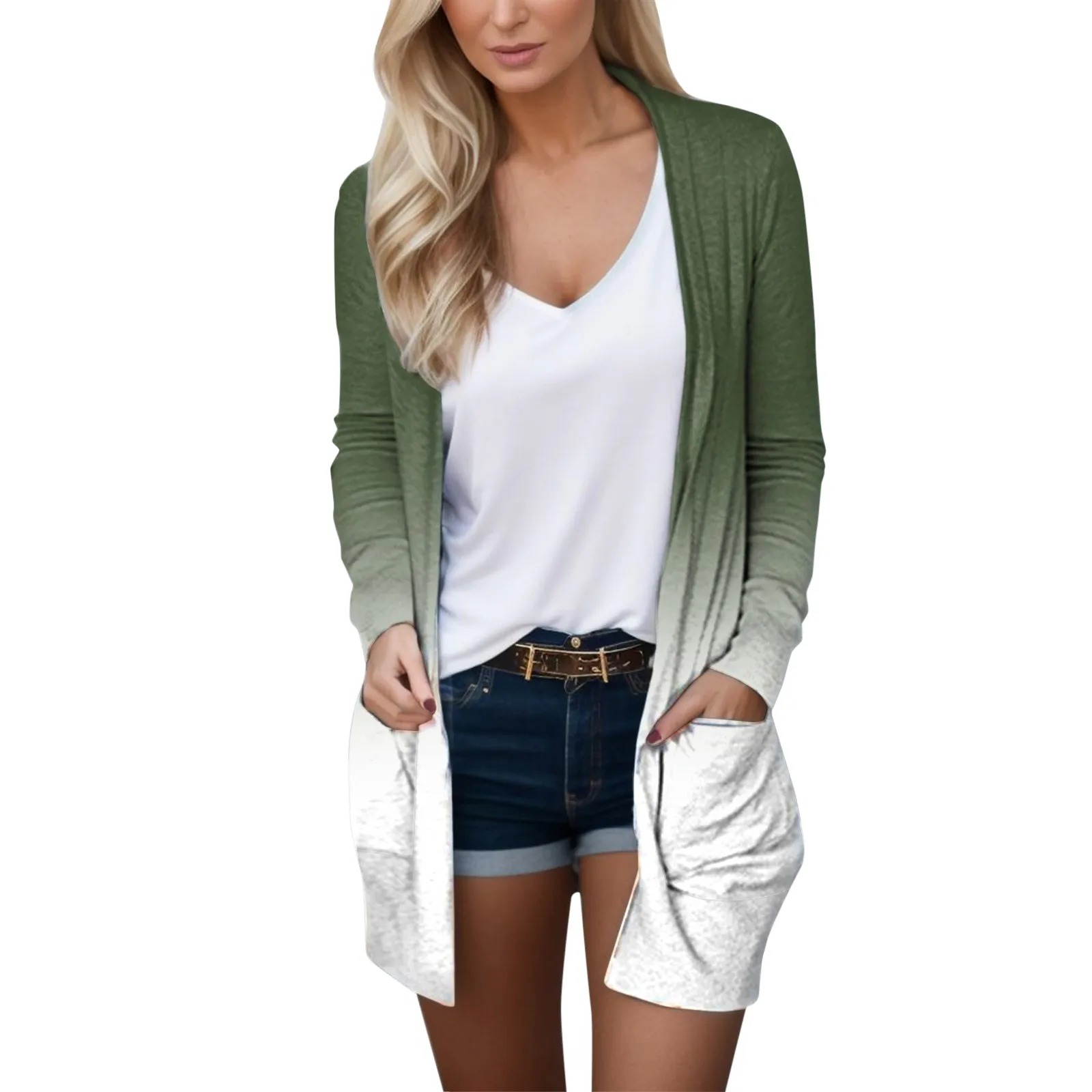 Gradient Print Long Sleeve Cardigan for Women