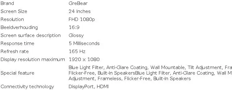 GreBear 24-Inch Gaming Monitor 165Hz 1080P IPS