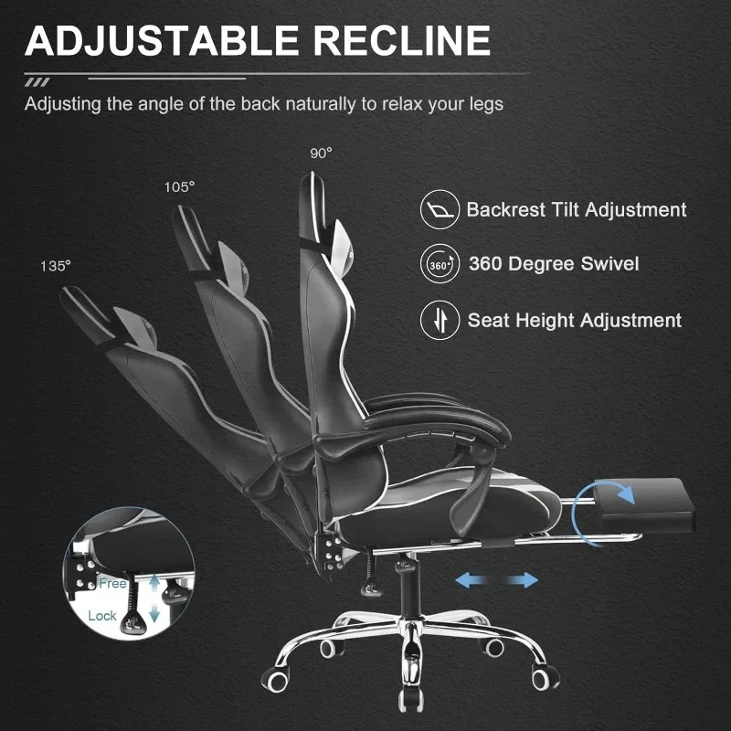 - Liberate Your Feet: Feeling tired from sitting all the time? Choose a chair with a footrest to relax your feet. When you don’t want to straighten your back, just take out the footrest, put your feet up, turn on your favorite music, and enjoy the comfort! Don’t worry about cleaning—it’s made of high-quality PU leather, just wipe it with a soft cloth and it will shine like new.