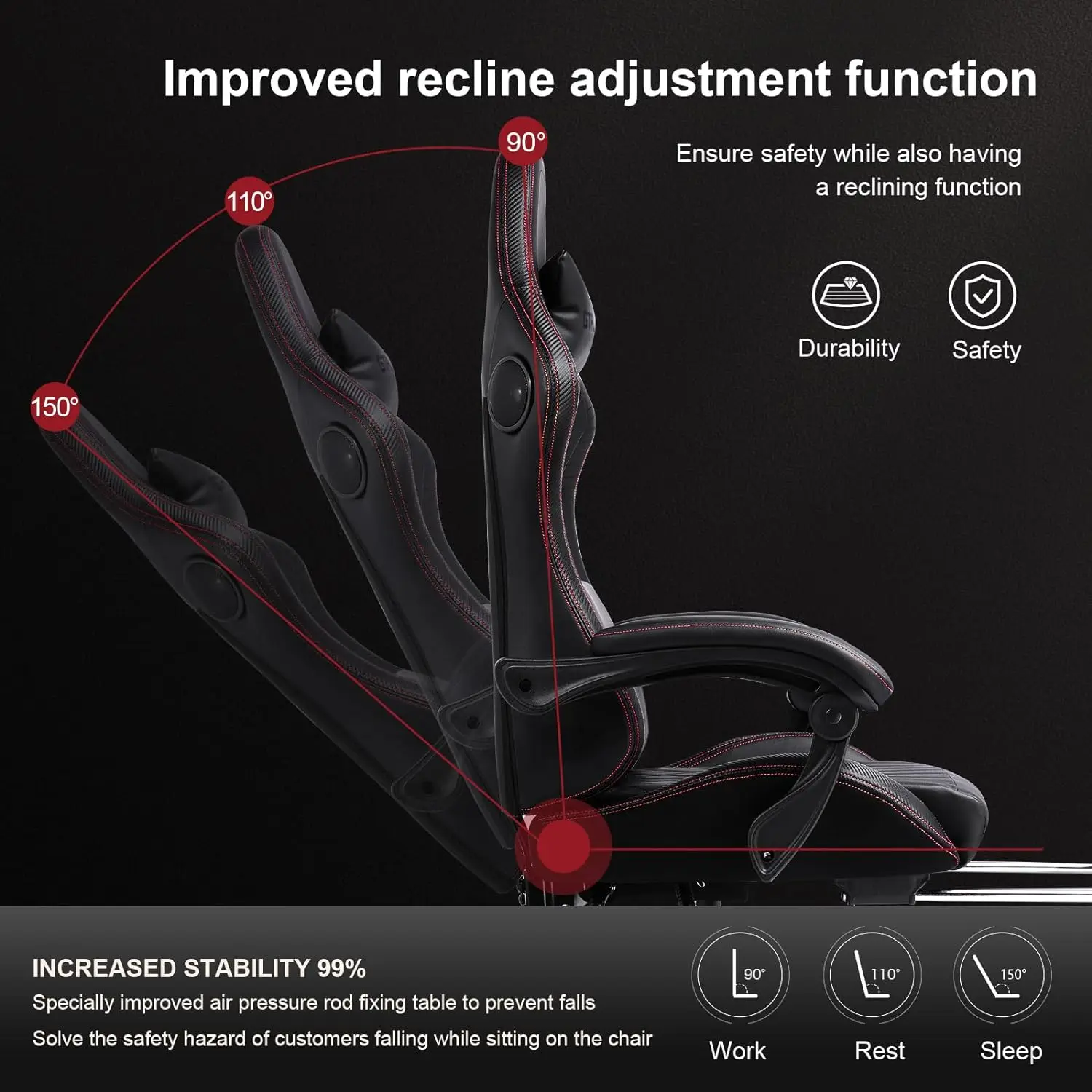 - Superior Design Features: The chair offers 360° rotating multi-directional racing-car rollers, and the backrest can incline up to 150°. It comes with a retractable padded footrest and linkage armrests. When tired, pull out the footrest, recline, connect to Bluetooth, and enjoy 3D surround music. This chair is ideal for work, study, and entertainment.