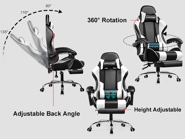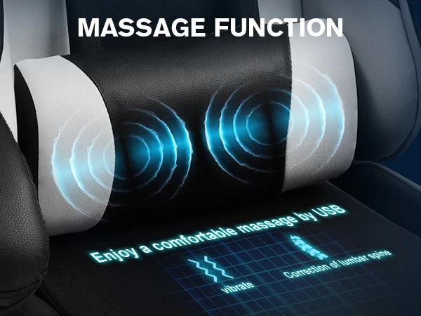 Most Comfortable And Relaxing: Equipped with a headrest and a massage lumbar pillow to help support your neck and waist. When your neck feels sore from gaming or working with your head down for a long time, the headrest helps relieve fatigue. When tired from sitting in the same position, lean back and use the massage waist pillow for added comfort.