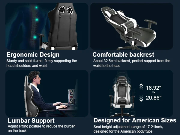 Crafted from high-quality materials, including a durable metal frame and supportive molded foam, this chair is built to withstand intense gaming sessions. The soft PU leather and smooth-rolling casters provide unmatched comfort and mobility.
