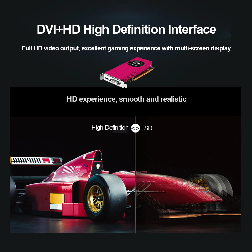 • Display Outputs and Bandwidth: This PC video card supports multiple display outputs, including DVI and HDMI interfaces, with the HDMI interface specifically catering to high-definition displays. It has a memory bit width of 128 bits and a bandwidth of 86.4 GB/s, both of which significantly impact the speed and performance of memory data transfer.