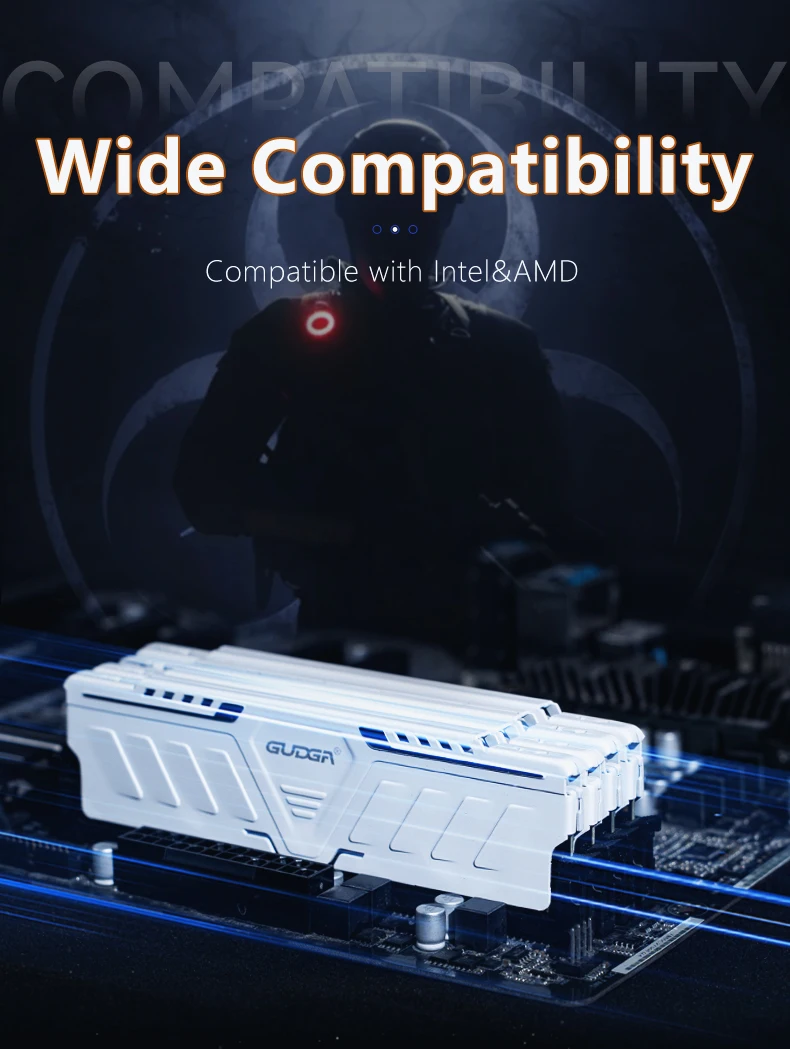 Upgrade your desktop with GUDGA DDR4 memory designed for stable everyday computing and reliable system performance. Available in 8GB and 16GB capacities, this desktop RAM is built with an 8-layer PCB to help reduce signal interference at high frequencies and support more consistent operation. The module also features gold-plated contacts and advanced soldering for improved conductivity, durability, and a clean finish.