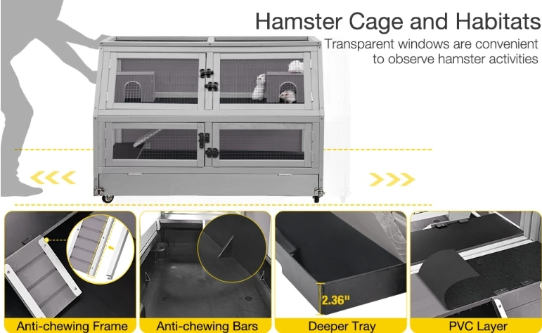 Anti-biting Aluminum Alloy Frame: The edges of the hamster cage are framed with aluminum alloy to prevent pets from chewing on it, ensuring it lasts longer.