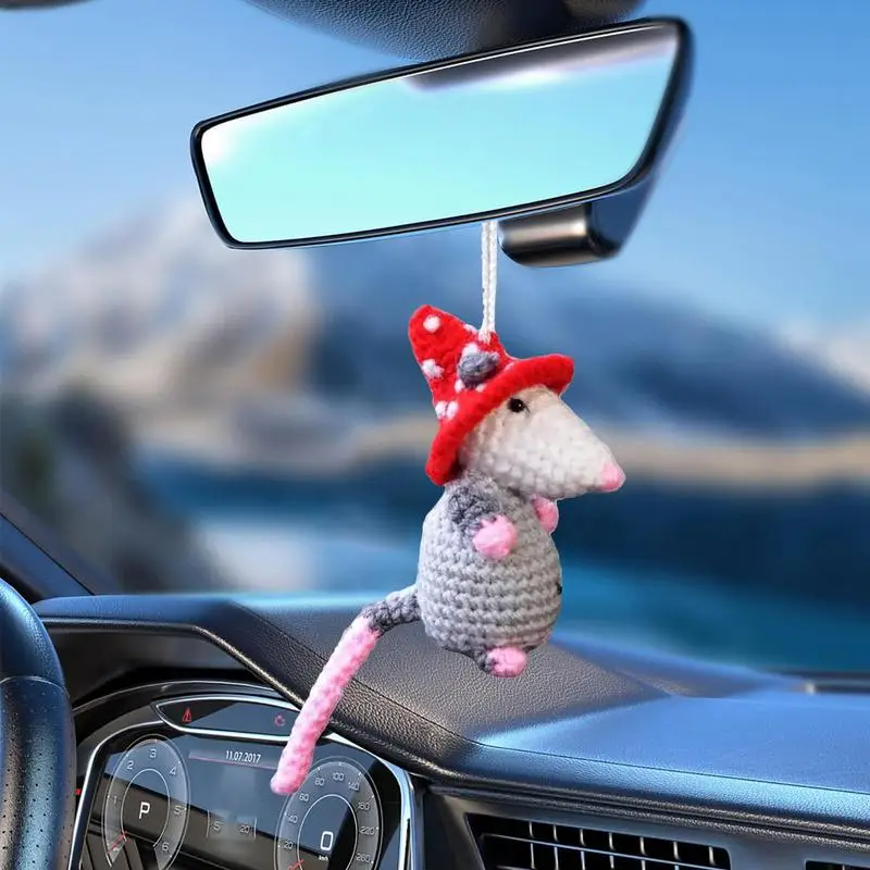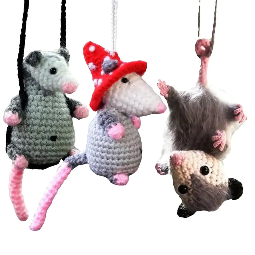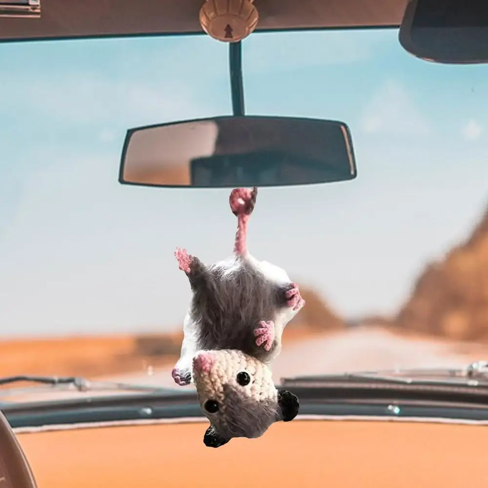 Handmade Knitted Opossum Rearview Mirror Charm