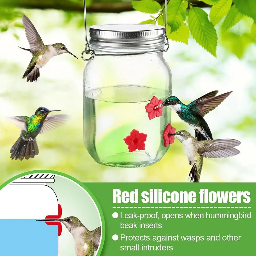 - Increase Your Backyard Fun: Witness the beautiful sight of vibrant hummingbirds visiting your garden feeder. Multiple feeding ports entice more birds, while the silicone flower mouth and leak-proof design prevent spills and messes.