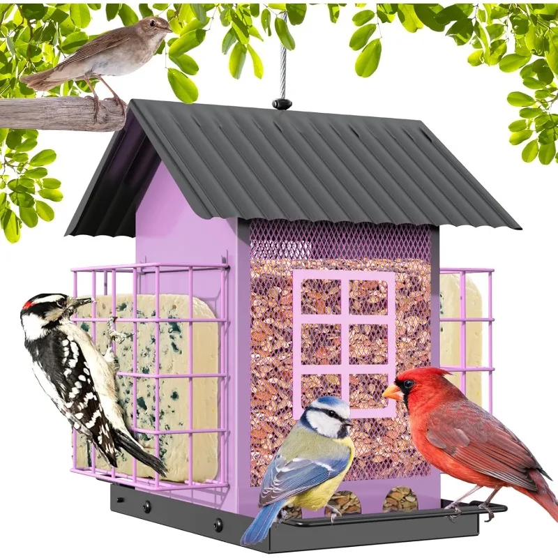 Hanging Metal Bird Feeder with Suet Cages