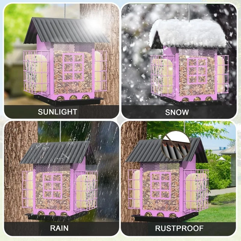 - 🐦 Sturdy Bird Feeder: The metal bird feeder is built strong to endure outdoor elements. It’s coated with waterproof paint to protect against rain, wind, and weather. This feeder is made to last for years.