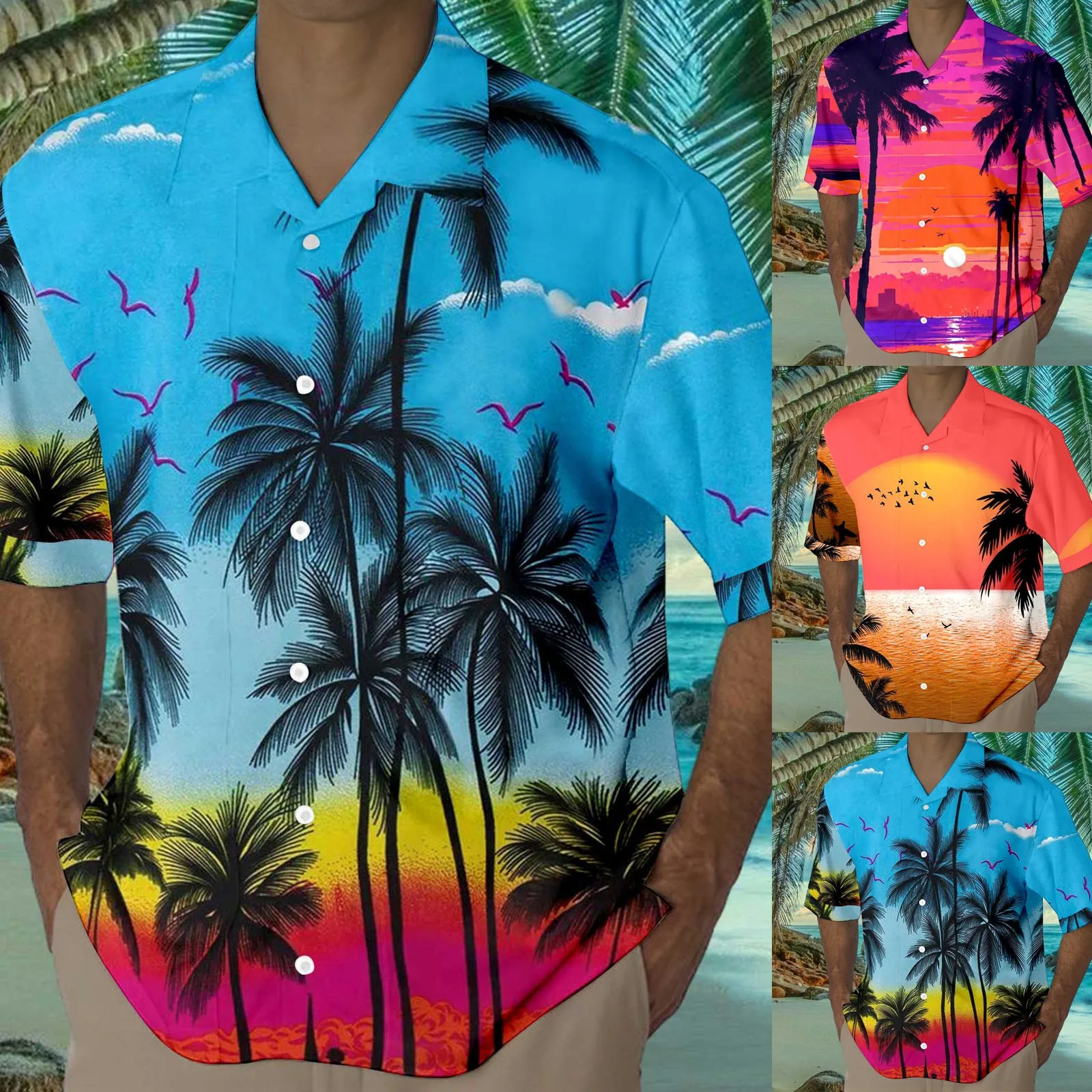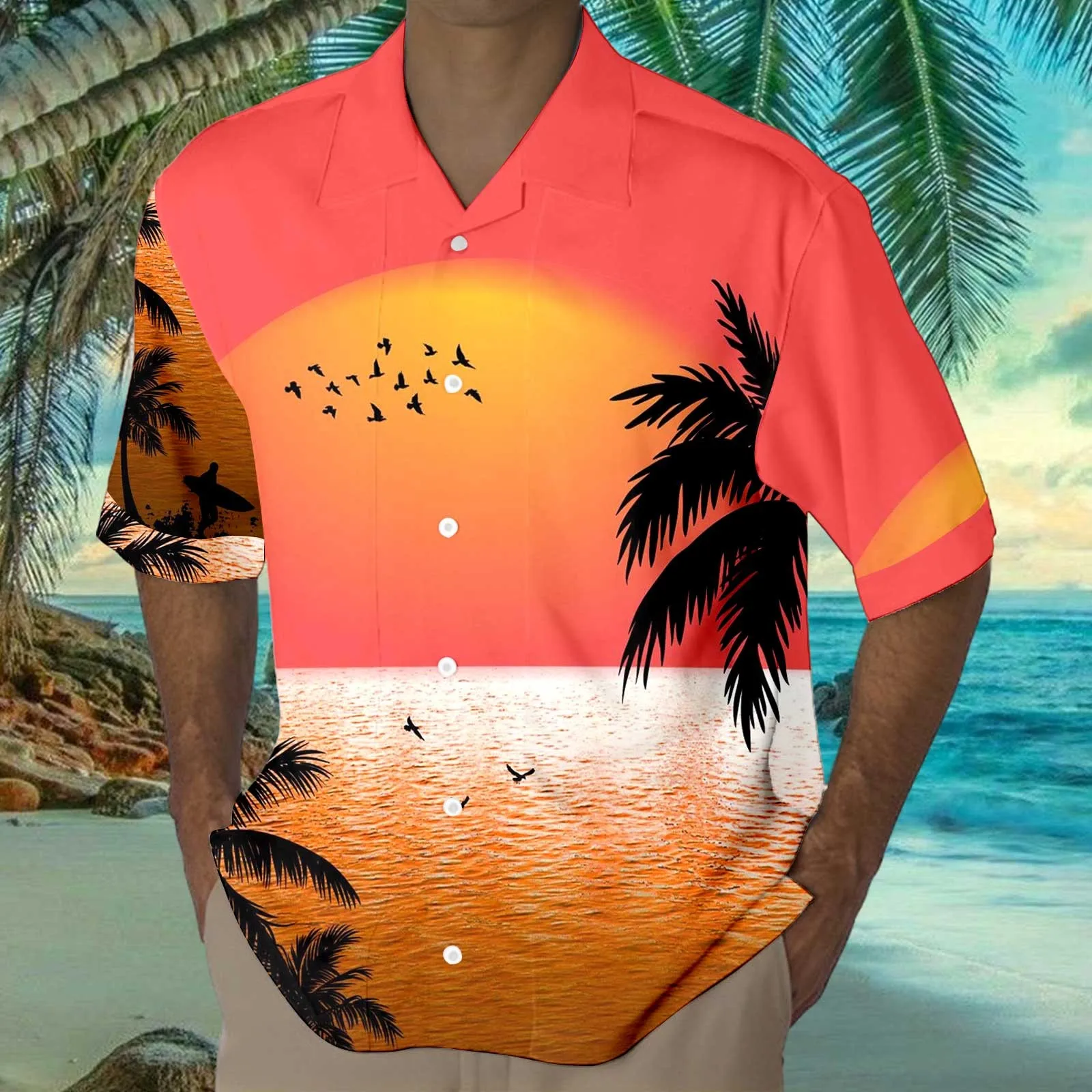 Hawaiian Casual Mens Print Shirts Short Sleeve
