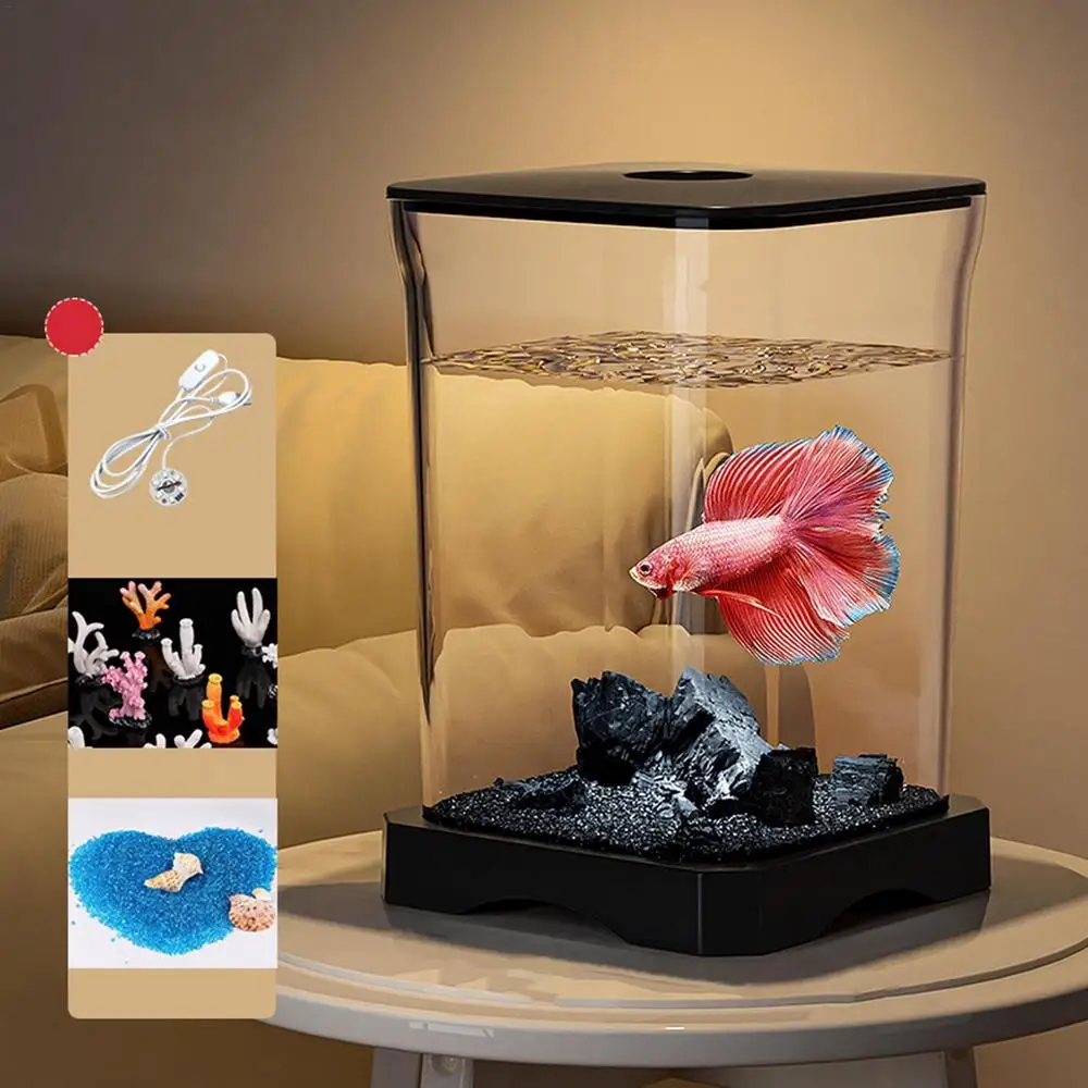 HD Betta Fish Tank Small Aquarium with LED Light
