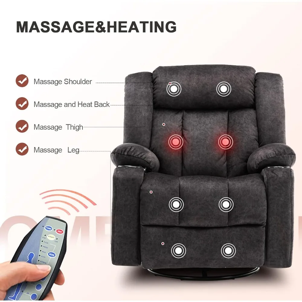 Heated Massage Recliner with 360 Swivel and Cup Holders