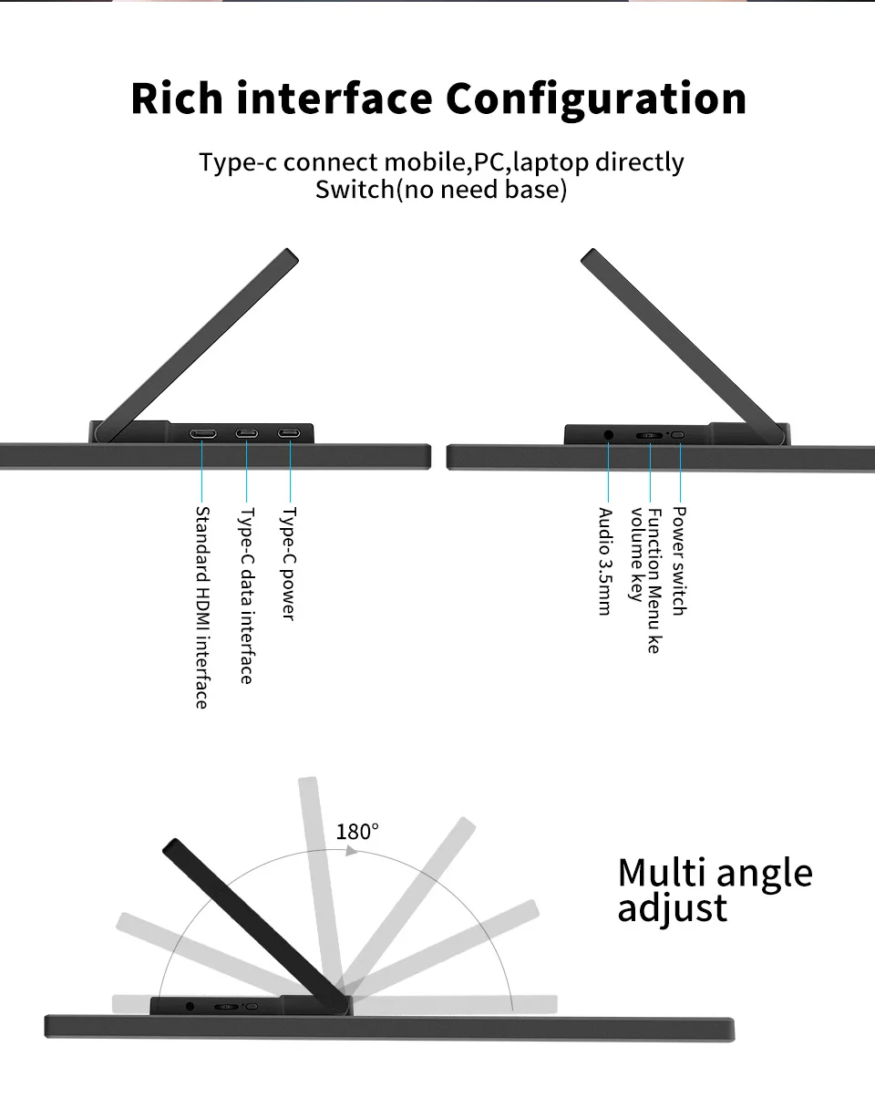With a Mini HDMI port, 3.5mm headphone jack, and 2 full-featured USB-C ports, the monitor is compatible with most devices, such as PC, Laptop, Mac, Surface, Phone, PS4, PS5, Xbox, NTD Switch, Raspberry Pi, Camera, or other laptop/PC, phones, and tablets.