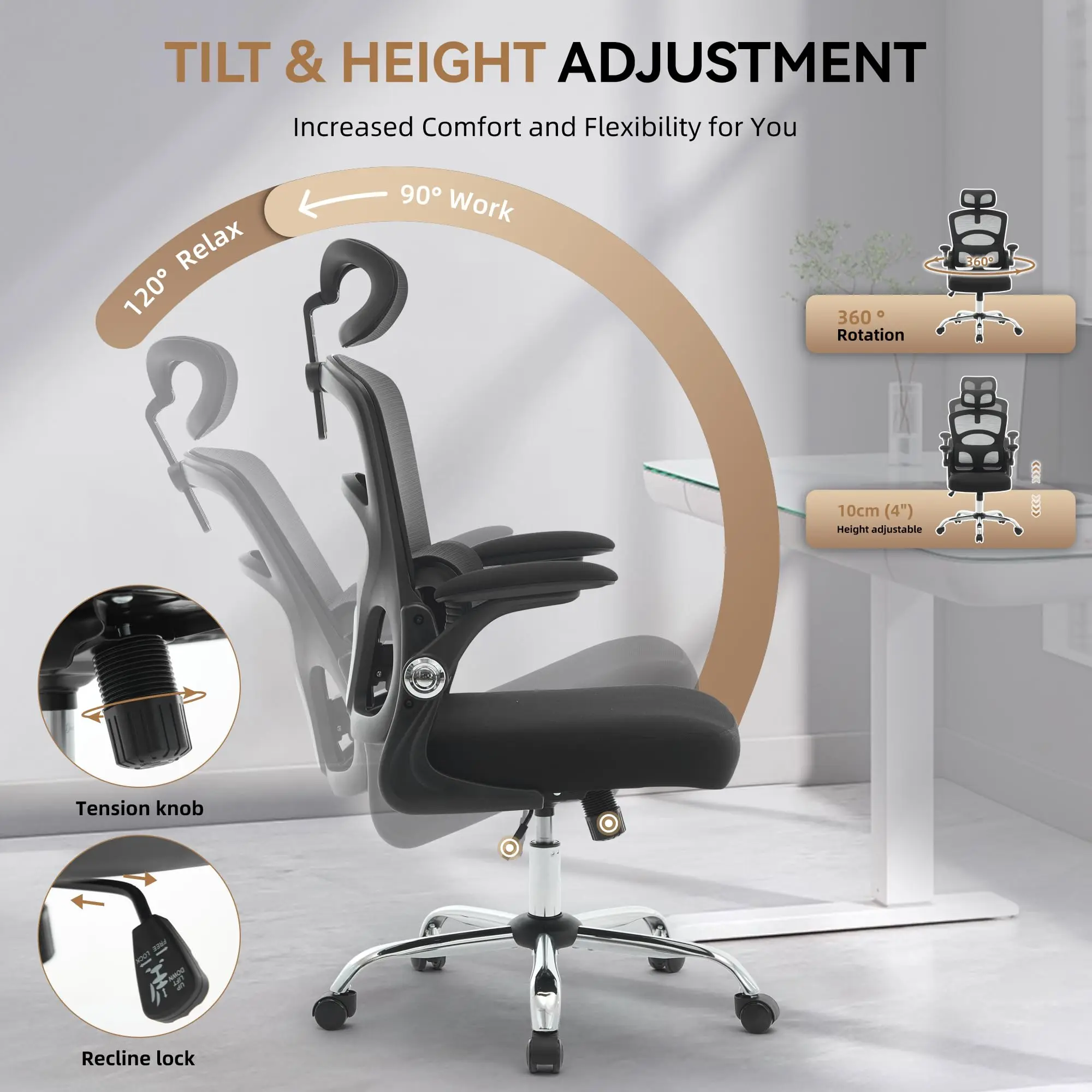 Effortless Mobility and 360 Degree Swivel: Quiet carpet-friendly casters and full swivel capability make it easier to move around your workspace and reach items at your desk.