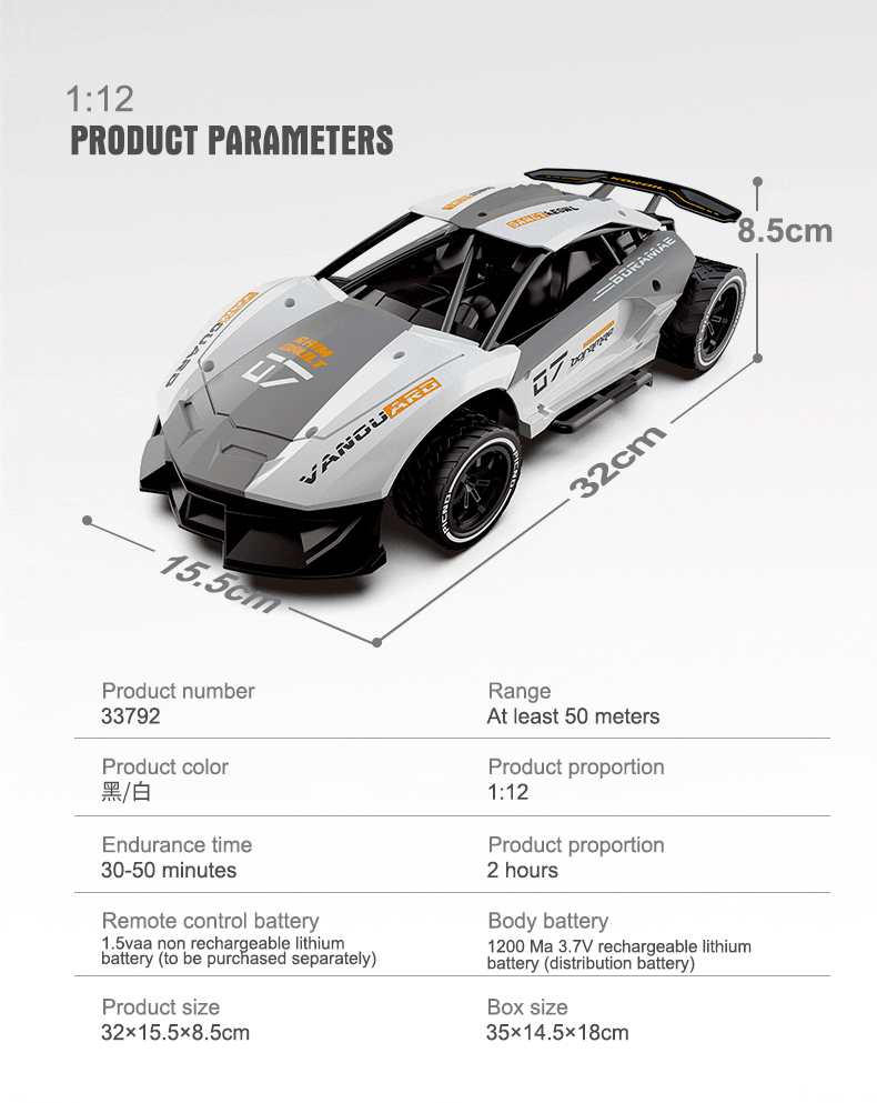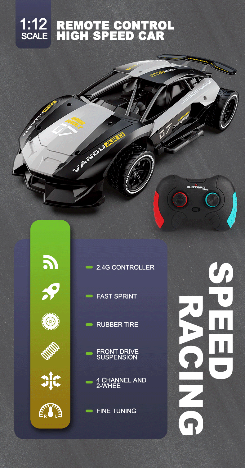 High-Speed RC Car 1:12 Simulation Racing Car 2.4G 360° Driving RC Car 2WD Drift Charging Sports Car Toy Birthday Gifts For Boys Girls