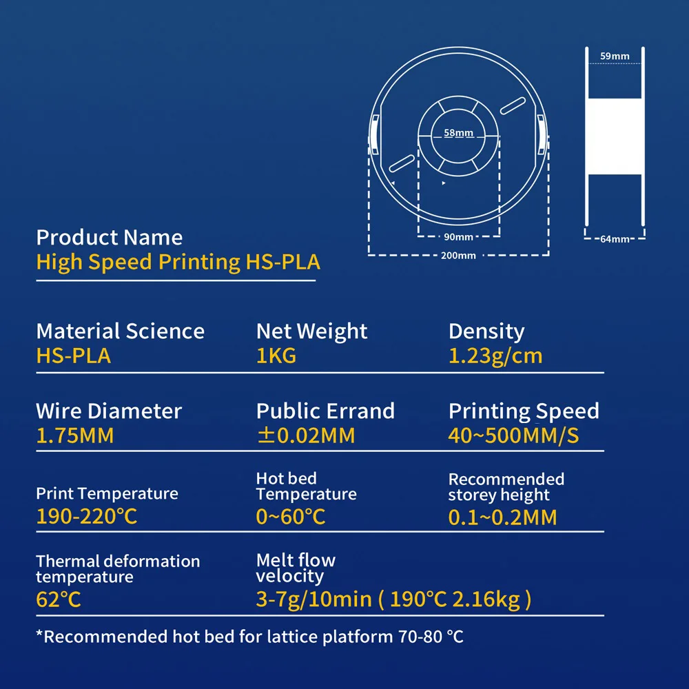 HS-PLA has minimum tolerance and low warping to ensure consistent feeding and stable prints, good layer bonding, less stringing, no bubbles, no cracking, no deformation, and easy handling, resulting in an outstanding surface finish and high precision.