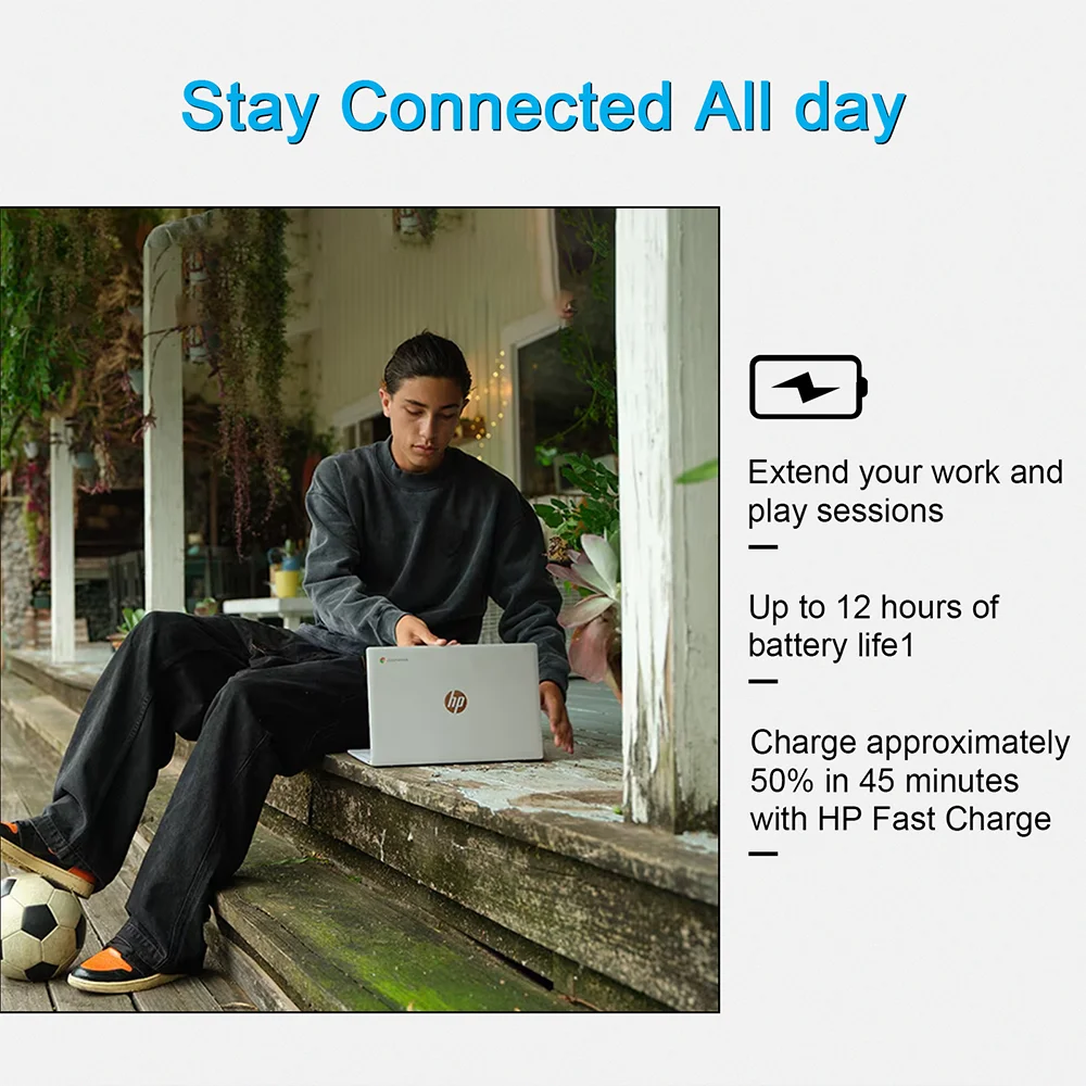 Stay productive and worry-free with the HP Chromebook 14″, packed with the performance of up to an Intel processor and the easy-to-use Chrome OS. Do more with plenty of memory, faster speeds, and wireless connectivity, and enjoy faster boot times and long battery life with HP Fast Charge so you can stay connected all day.