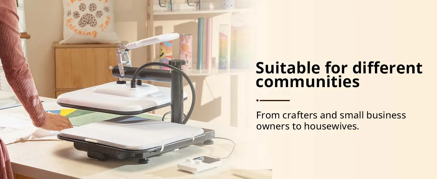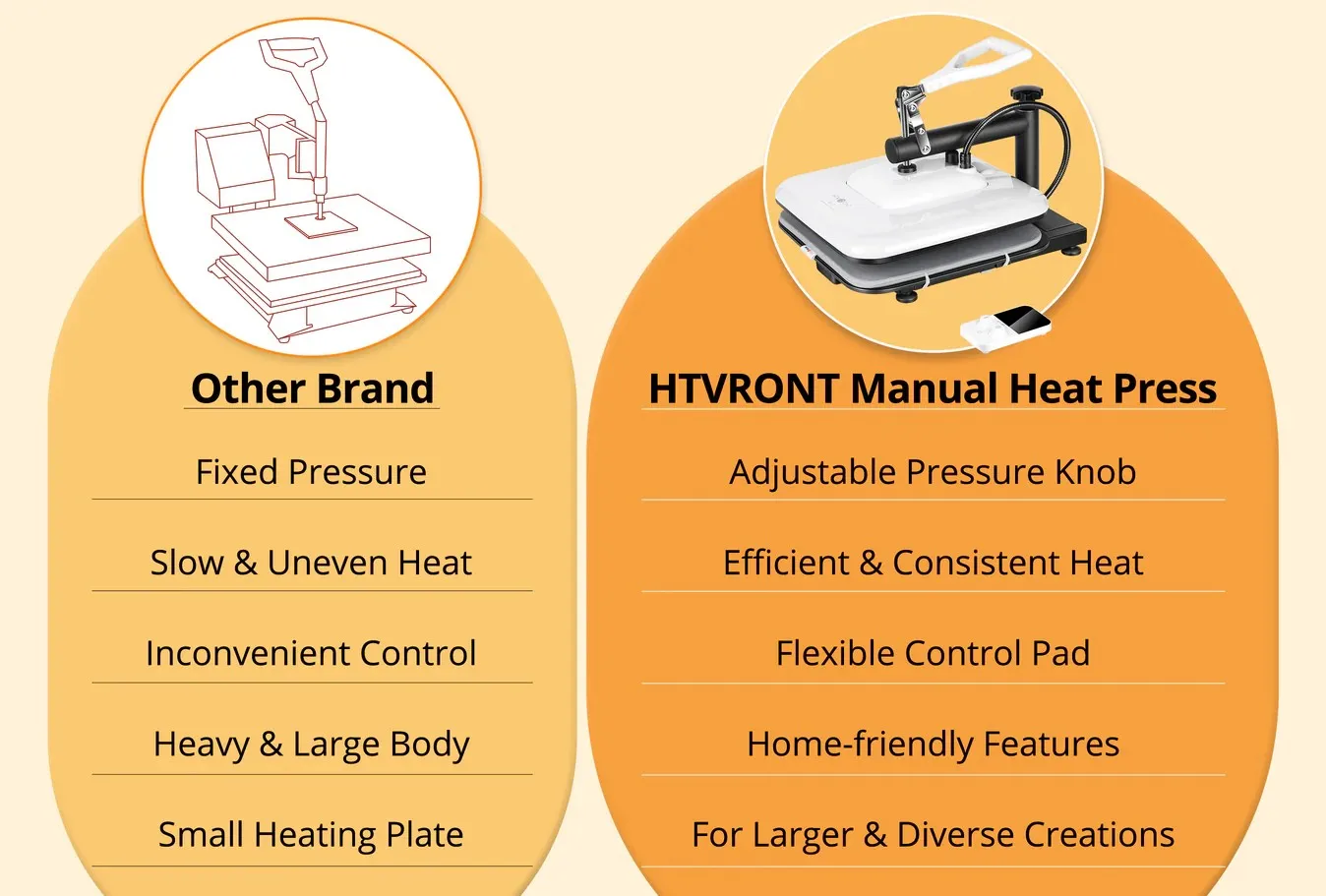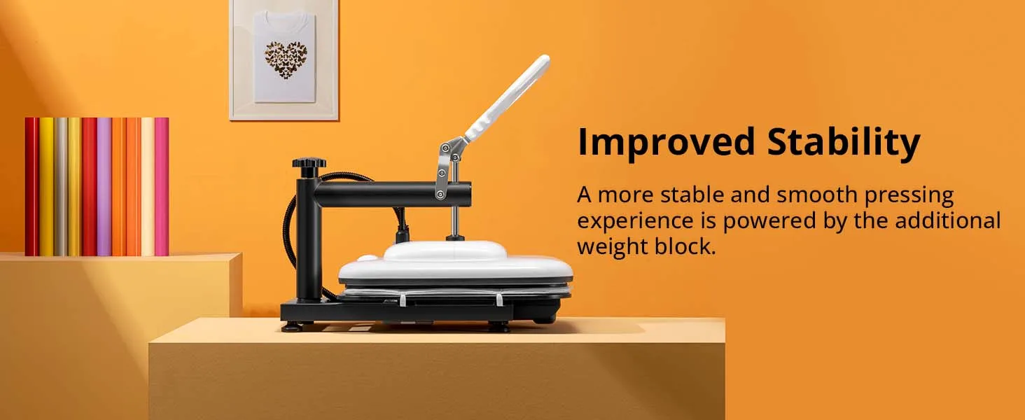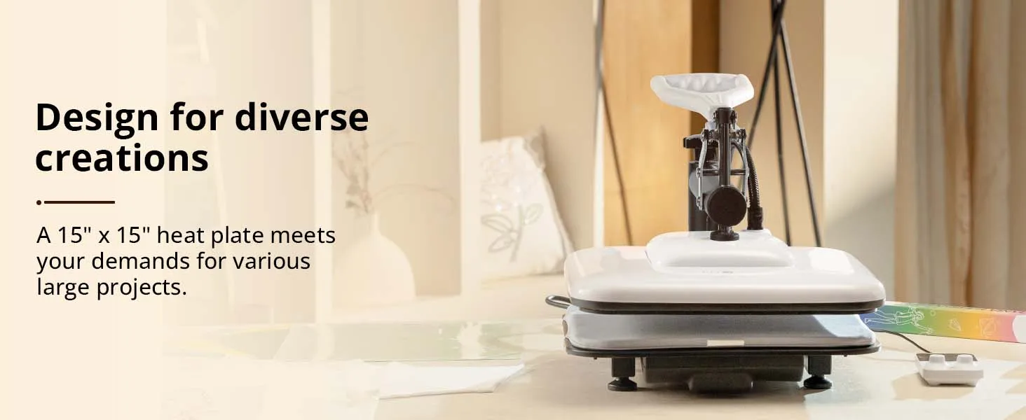 - Fashionable and Sleek Design: The updated HTVRONT manual heat press machine features a modern, fashionable look with a smooth appearance. It is ideal for your home or studio and makes an exquisite gift. With the 15×15 heat press machine, both crafters and beginners can complete professional heat transfer projects.