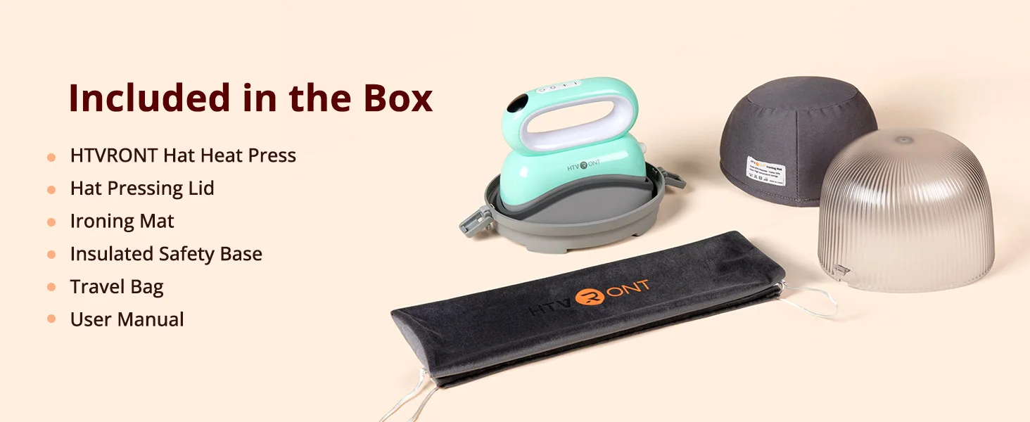 The HTVRONT Hat Heat Press is a brand-new portable heat press exclusive to various hats. With its built-in digital display screen, timer, and adjustable heat settings, there will be no more guesswork ironing designs. Its all-in-one functional design allows you to craft fancy hats, structured caps, and low-profile caps more easily and efficiently.