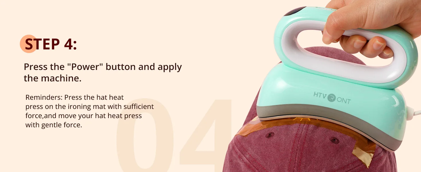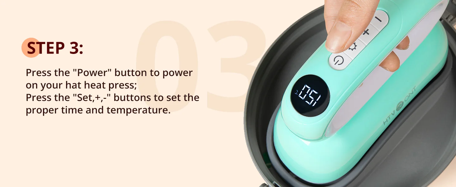 - Press the “Power” button to power on your HTVRONT Hat Heat Press.