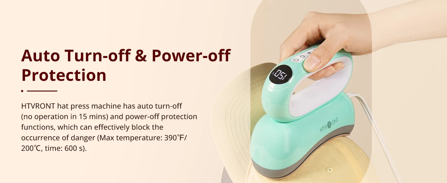 - Adjustable Heat Settings: Supported by flexible temperature and time settings (Max temperature: 390℉/ 200℃, time: 600 s), the HTVRONT Hat Heat Press can meet all your heat transfer needs.