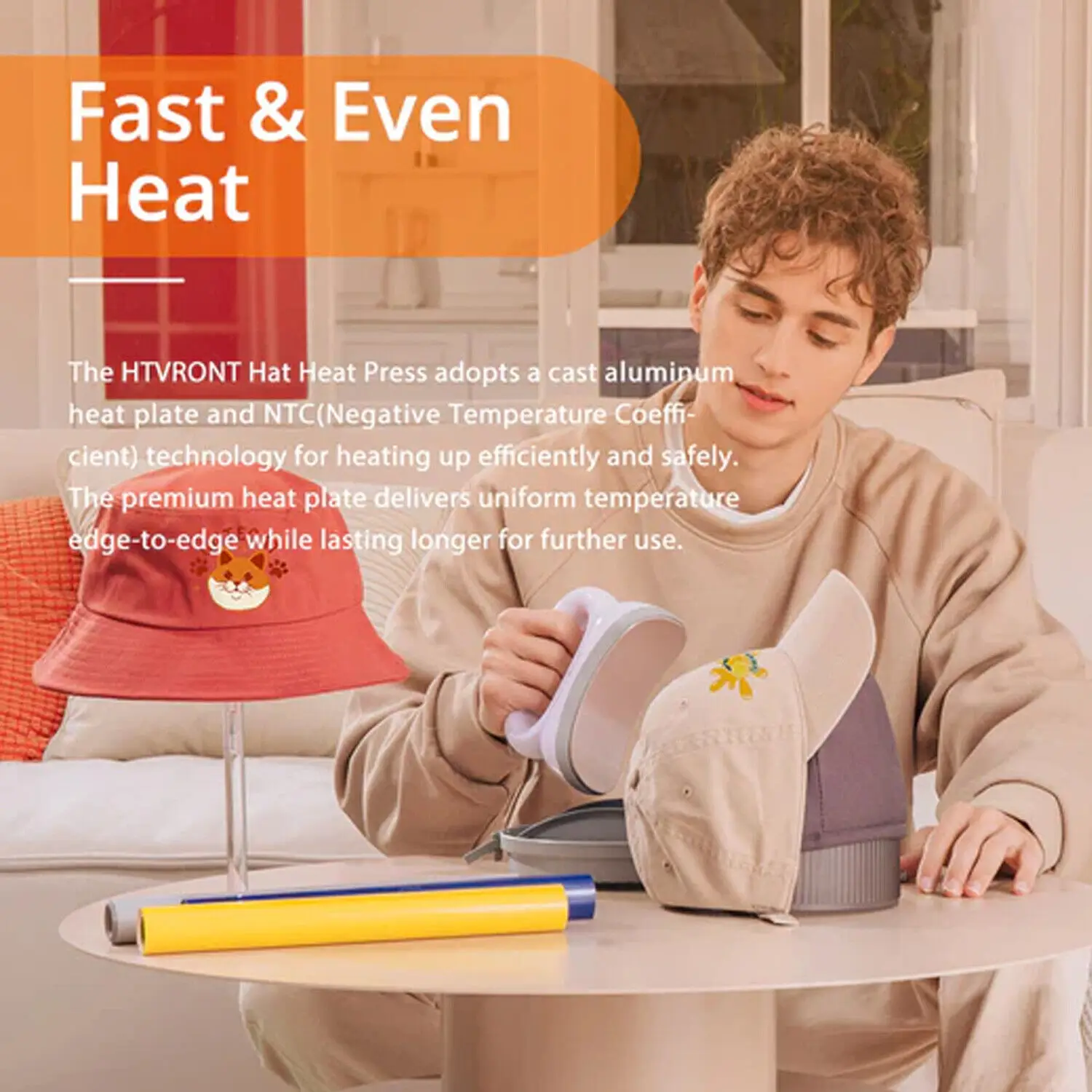 - Fast & Even Heat: The HTVRONT Hat Heat Press adopts a cast aluminum heat plate and NTC (Negative Temperature Coefficient) technology for efficient and safe heating. The premium heat plate delivers uniform temperature edge-to-edge while lasting longer for further use.