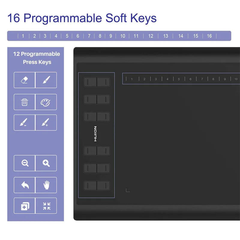 HUION H1060P Drawing Tablet 12 Hot Keys