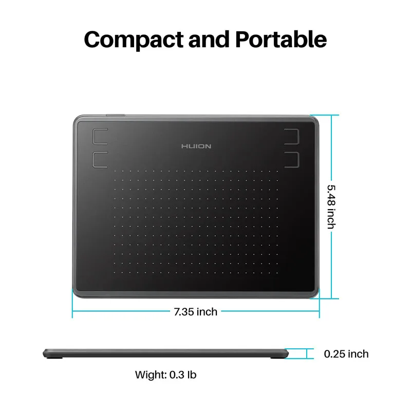 Lightweight and compact at about 135g and only 6.3mm thick, the H430P is easy to carry and fits cleanly into small workspaces. The 4.8 x 3-inch active area gives you a solid creative space without taking over your desk. Four express keys on the top can be programmed for shortcuts like Scroll, Undo, and Eraser to help you work faster and more smoothly.