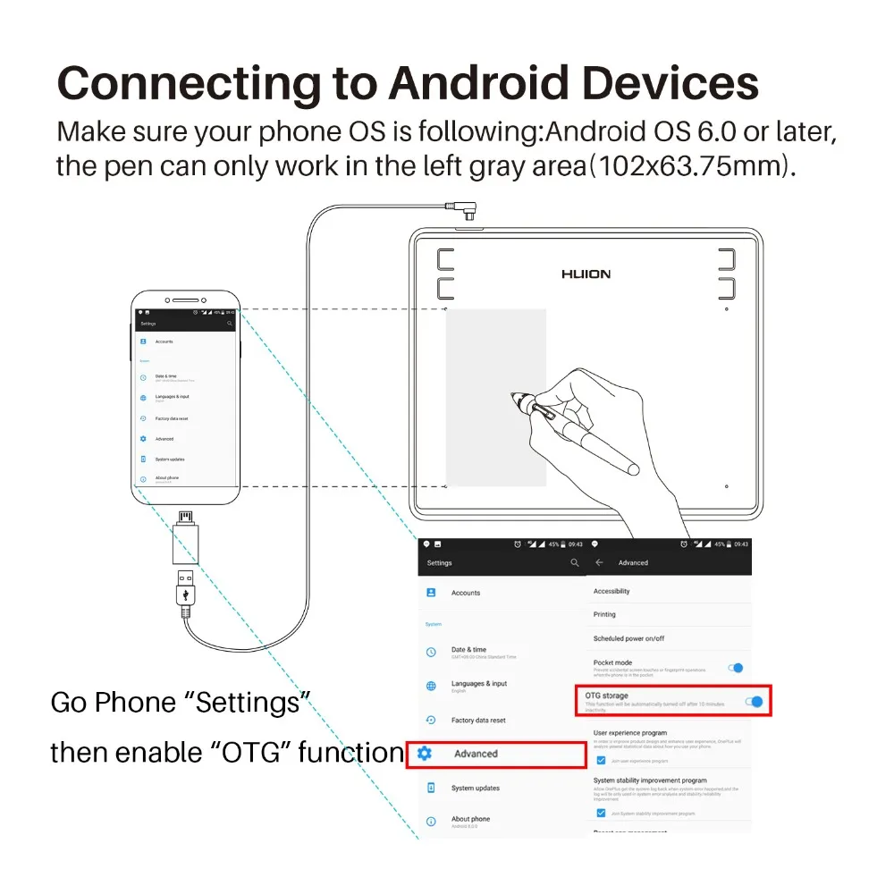 • Supports Android 6.0 or later with an included OTG adapter, transforming your phone into a digital drawing canvas. (Reminder: ChromeBook is not supported.)