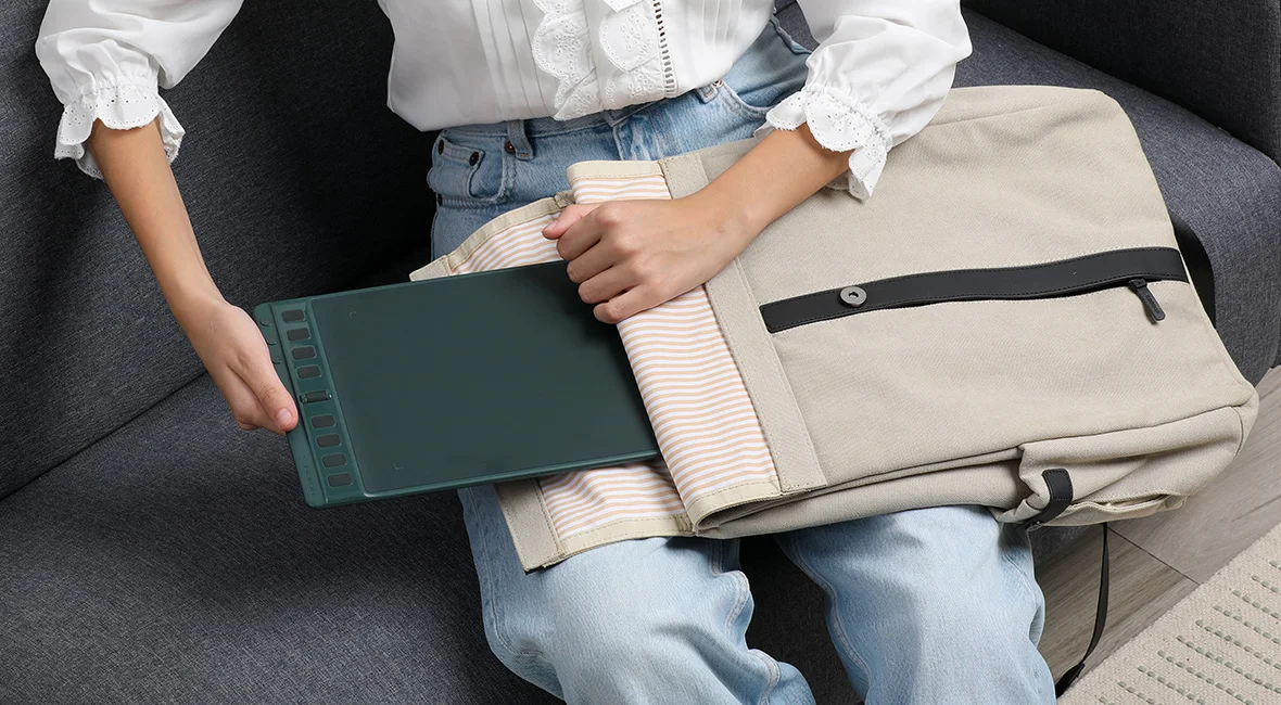 Inspiroy 2 narrows its width and keeps the overall thickness under 1cm, so it is easy to pack in a backpack for drawing on the go. The thinner body also helps reduce wrist discomfort during longer sessions.