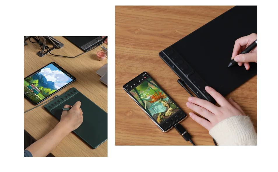 Aside from PC use, Inspiroy 2 is also compatible with Android and HarmonyOS phones and tablets, making it easy to connect whether you are a beginner or a professional artist. Working area: PC mode 221mm x 138mm, phone mode 138mm x 69mm.