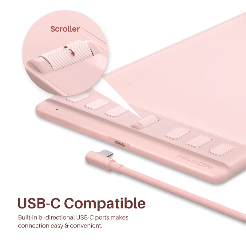 Equipped with 6 programmable press keys, you can assign the functions you use most. The press keys are easier to find and use thanks to the raised bar height, the color contrast, and the tactile bumps. Inspiroy 2 also includes a handy scroller with adjustable sensitivity in the driver, similar to a mouse scroll wheel.