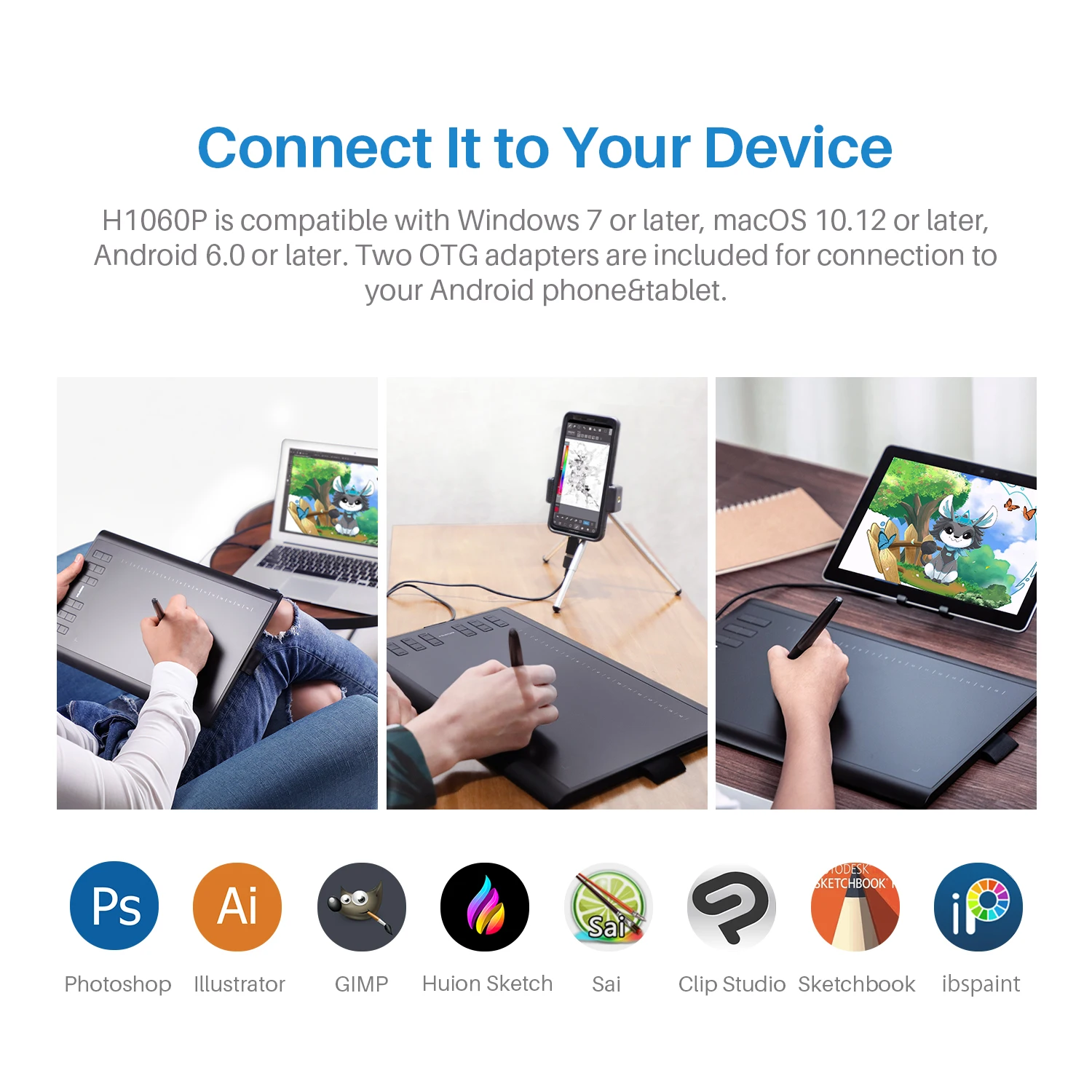 Unleash your creativity with the Huion Inspiroy H1060P, a portable pen tablet built for digital drawing, design, and everyday creative work.